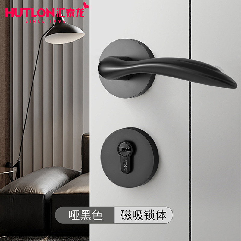 汇泰龙磁吸静音房门锁室内卧室卫生间实木门把手简约现代分体锁具