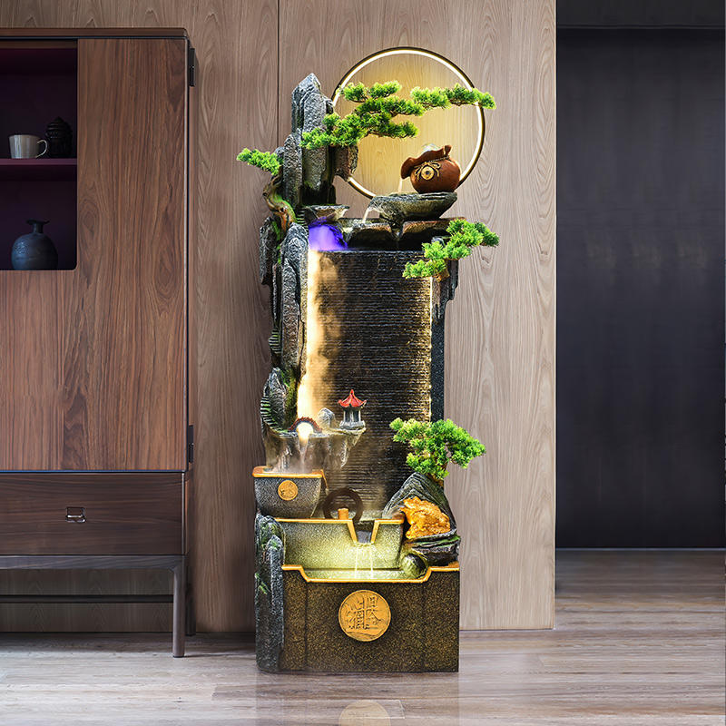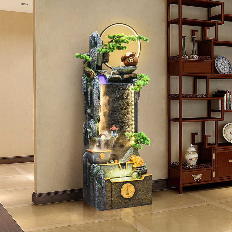 新中式高山流水摆件循环水景落地鱼缸喷泉客厅水幕墙造景开业招财