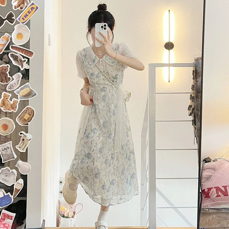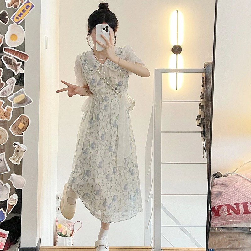 女大童夏天碎花连衣裙初中生娃娃领甜美裙子14岁少女孩小清新夏装