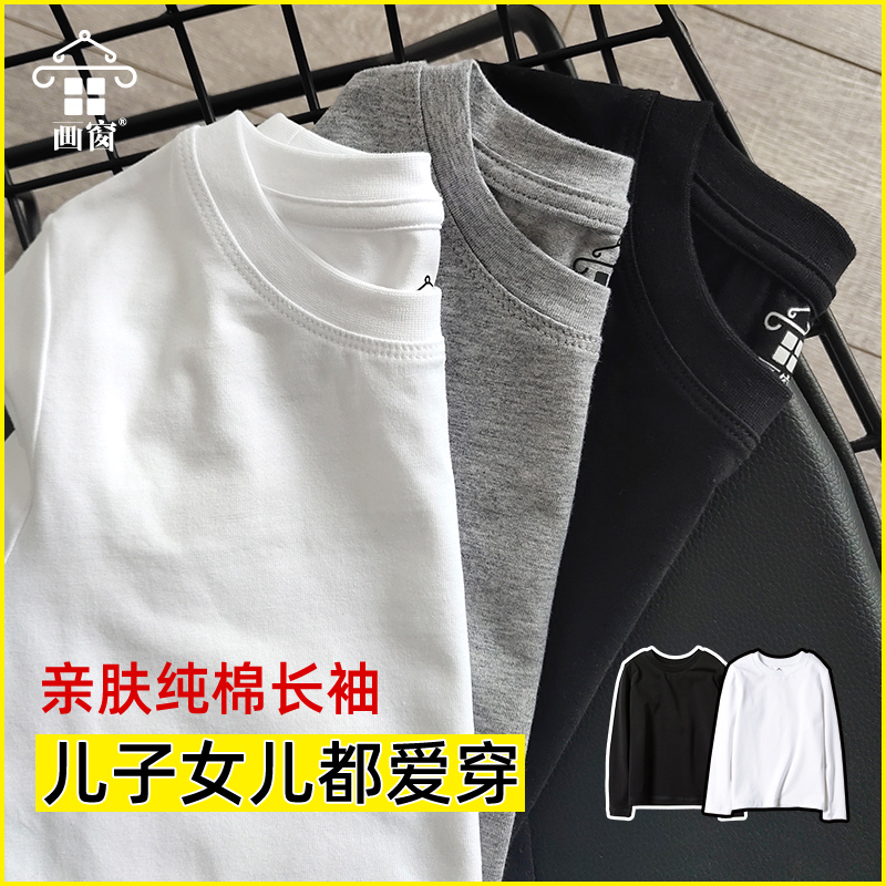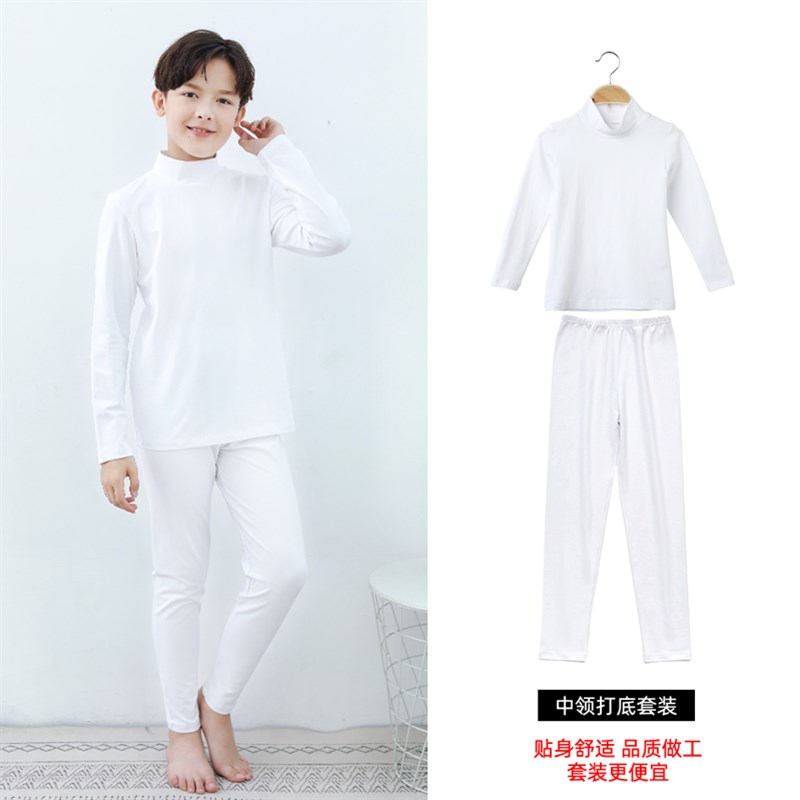 儿童高领打底衫长袖秋衣套装白色女童春秋薄款纯棉宝宝中男童T恤