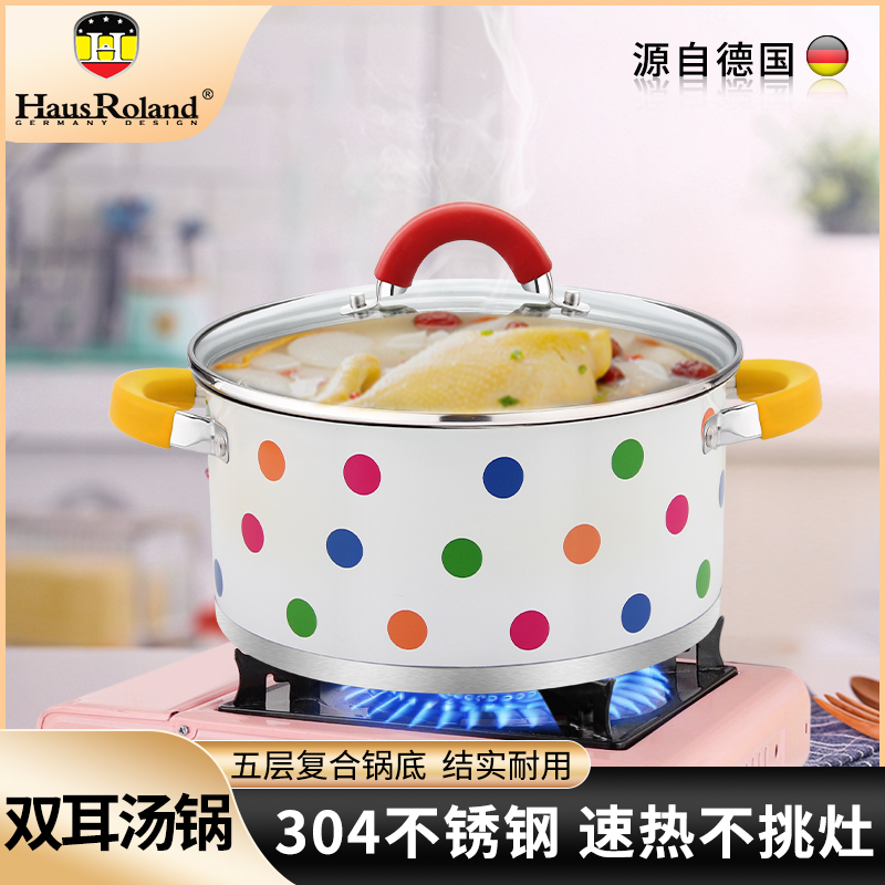 HAUSROLAND德国双耳锅汤锅304不锈钢加厚家用燃气电磁炉煮粥