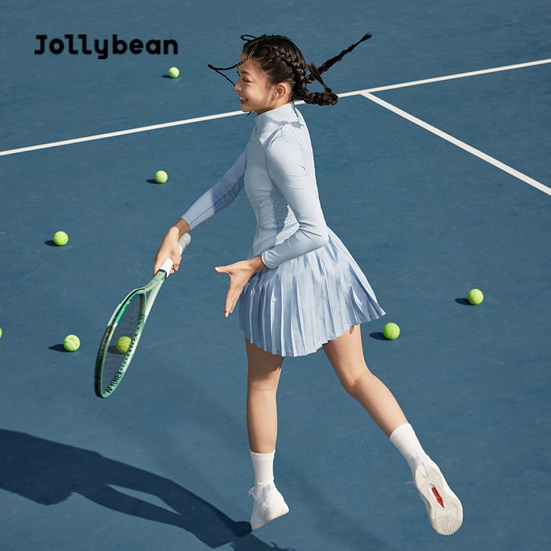 jollybean丨女童网球连衣裙25春秋款半拉链网球高尔夫运动连衣裙