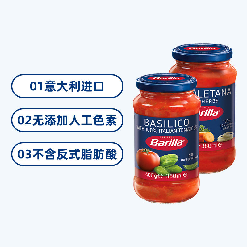 【自营】Barilla百味来罗勒400g*1罐+洋葱那不勒斯400g*1罐意面酱