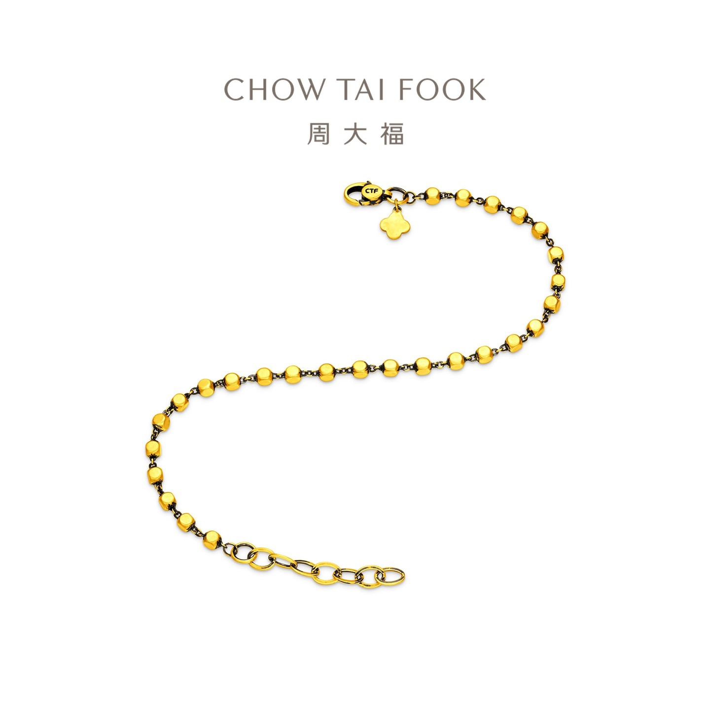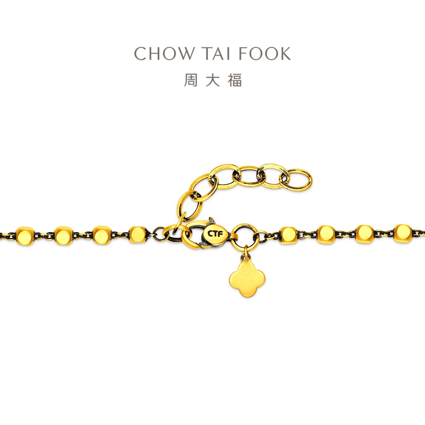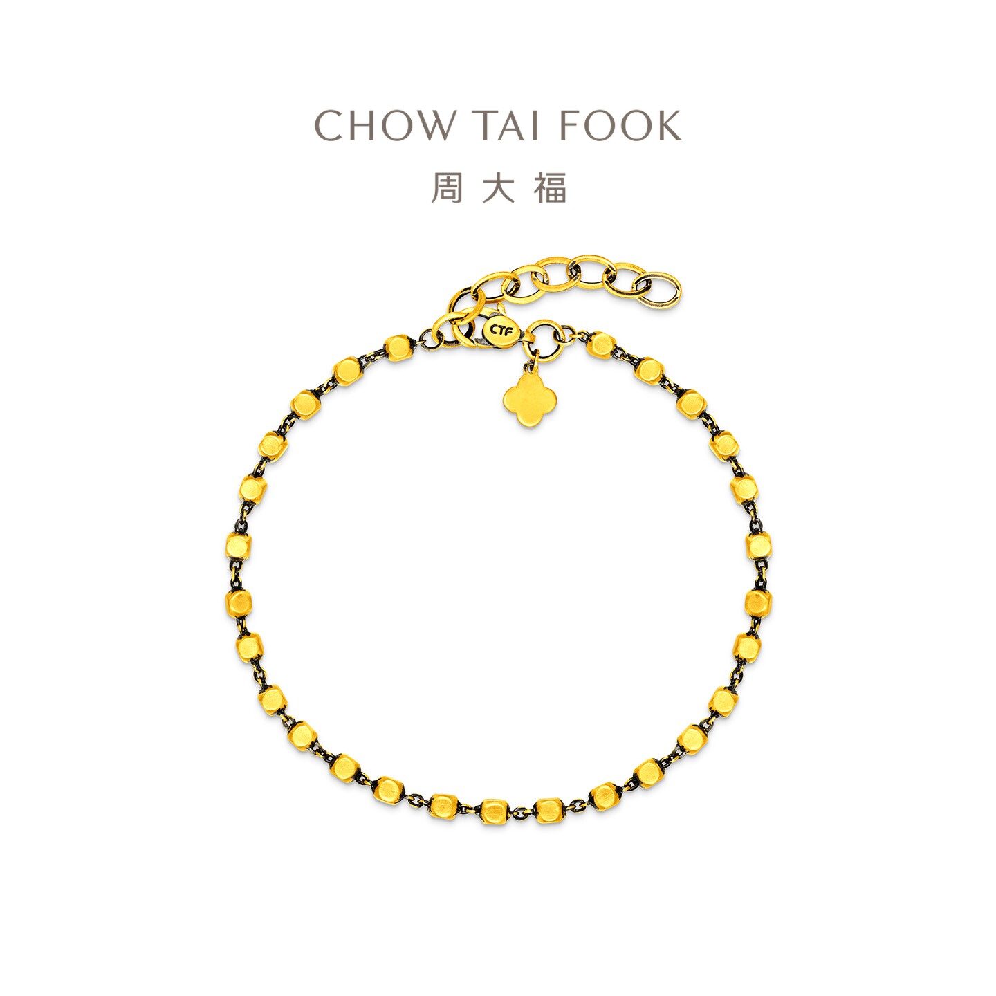周大福个性电黑方珠金珠足金黄金手链R37839送男友