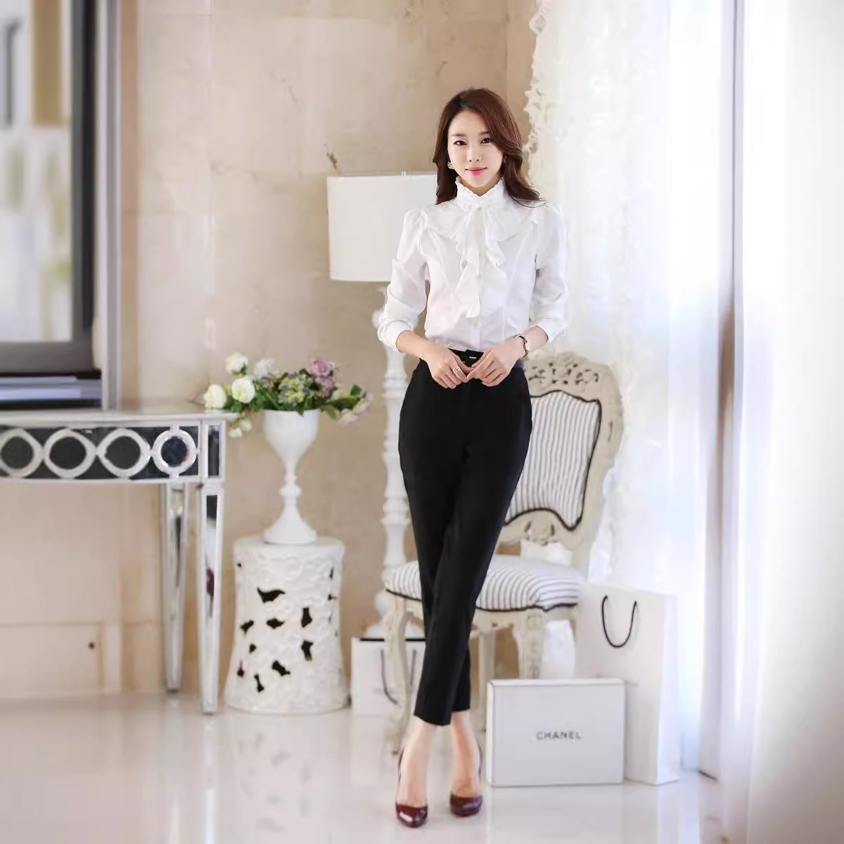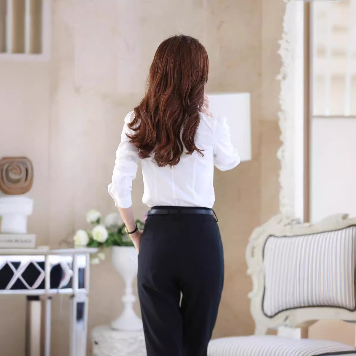2024新款春装韩版立领白色雪纺衬衫女长袖修身打底加厚保暖衬衣女