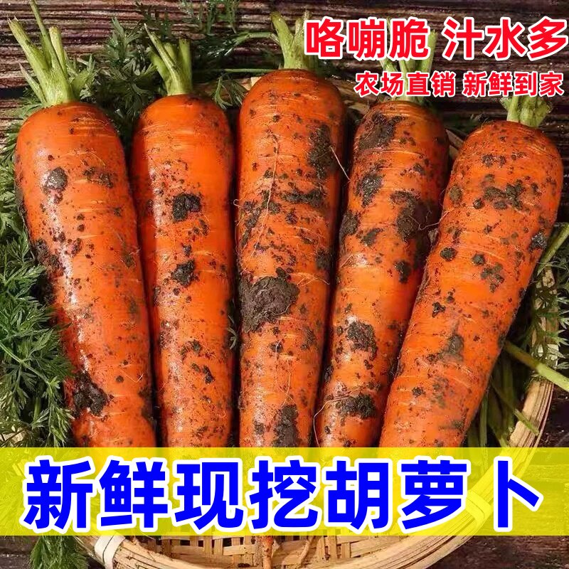 新鲜胡萝卜带泥农家自种现挖当季水果胡萝卜脆甜多汁生吃蔬菜包邮