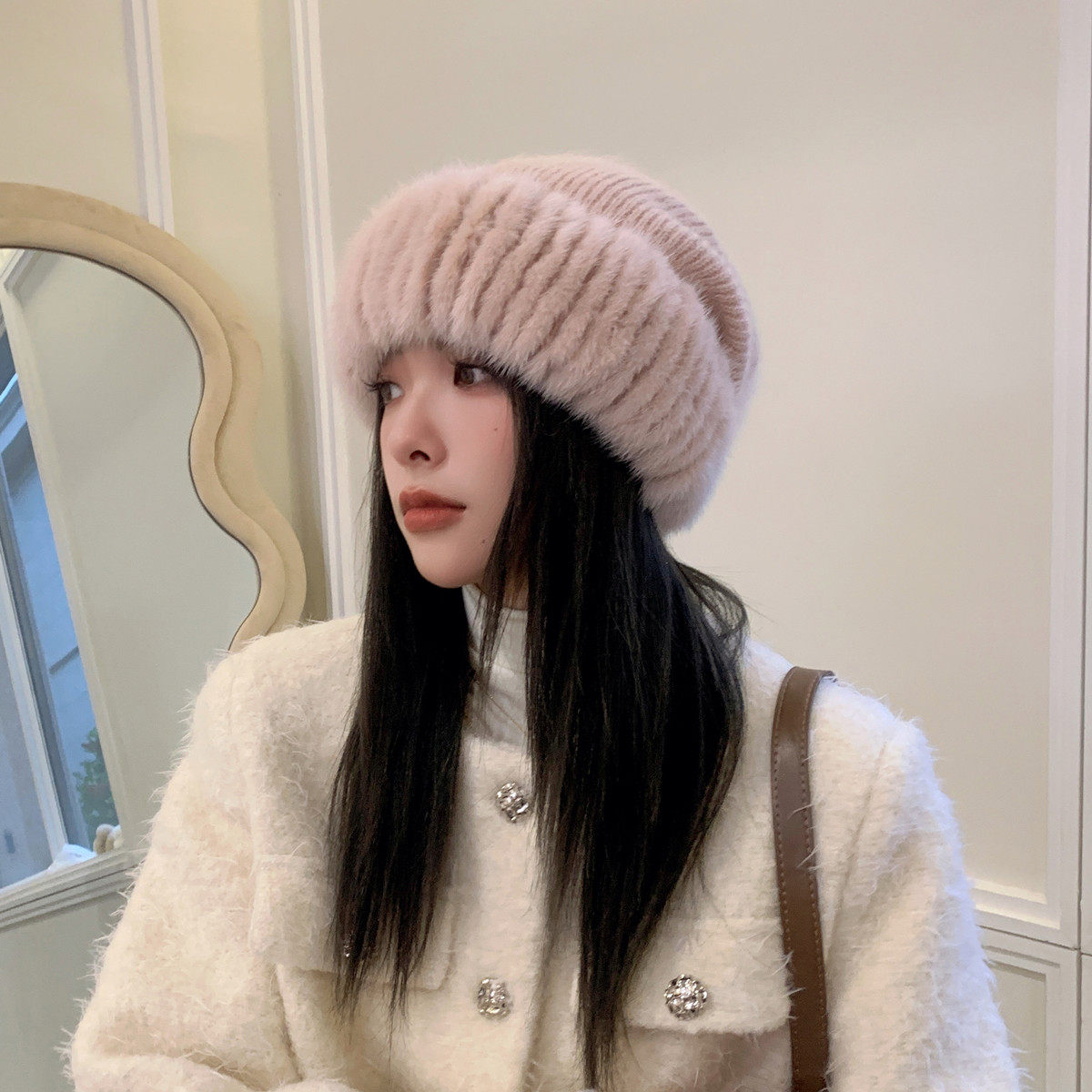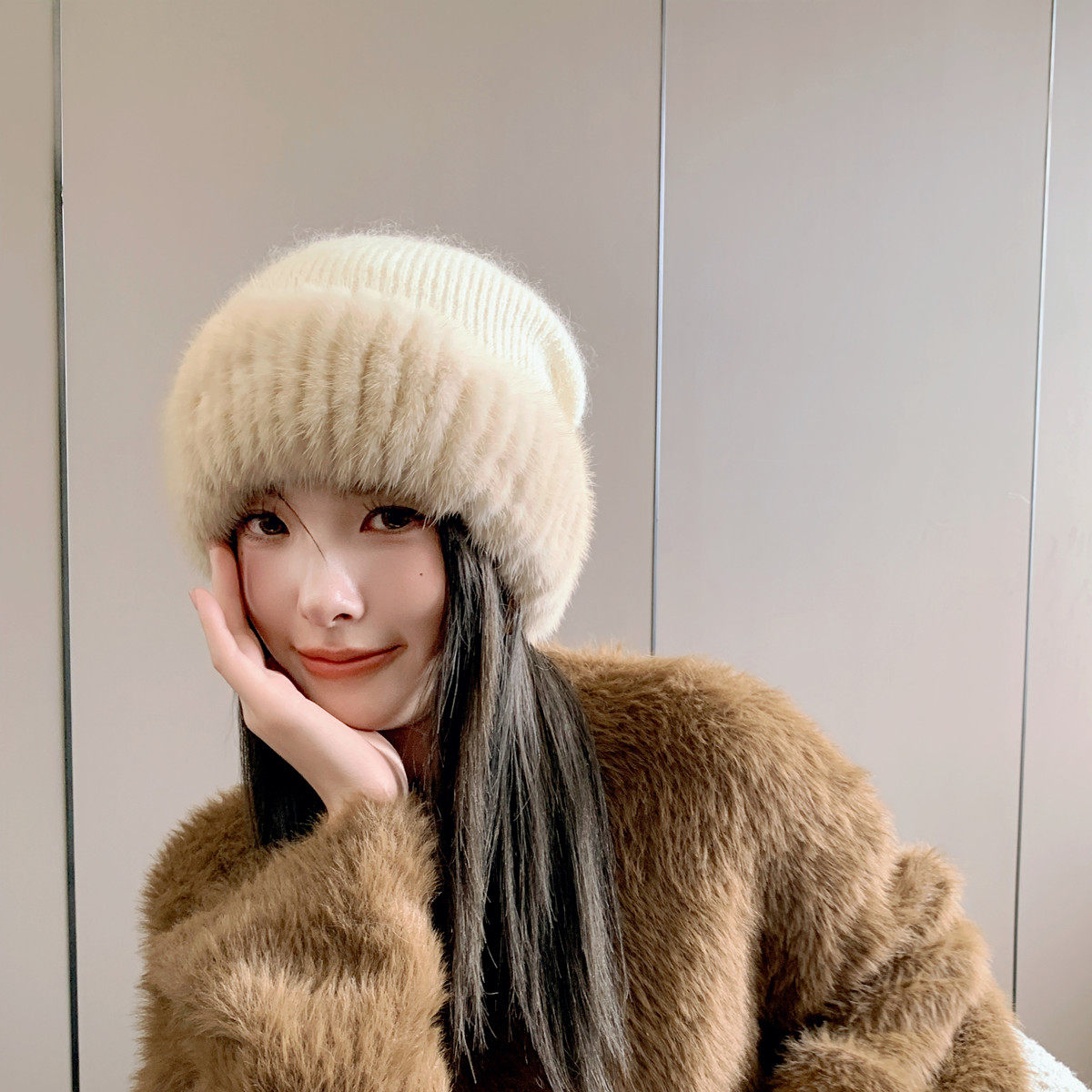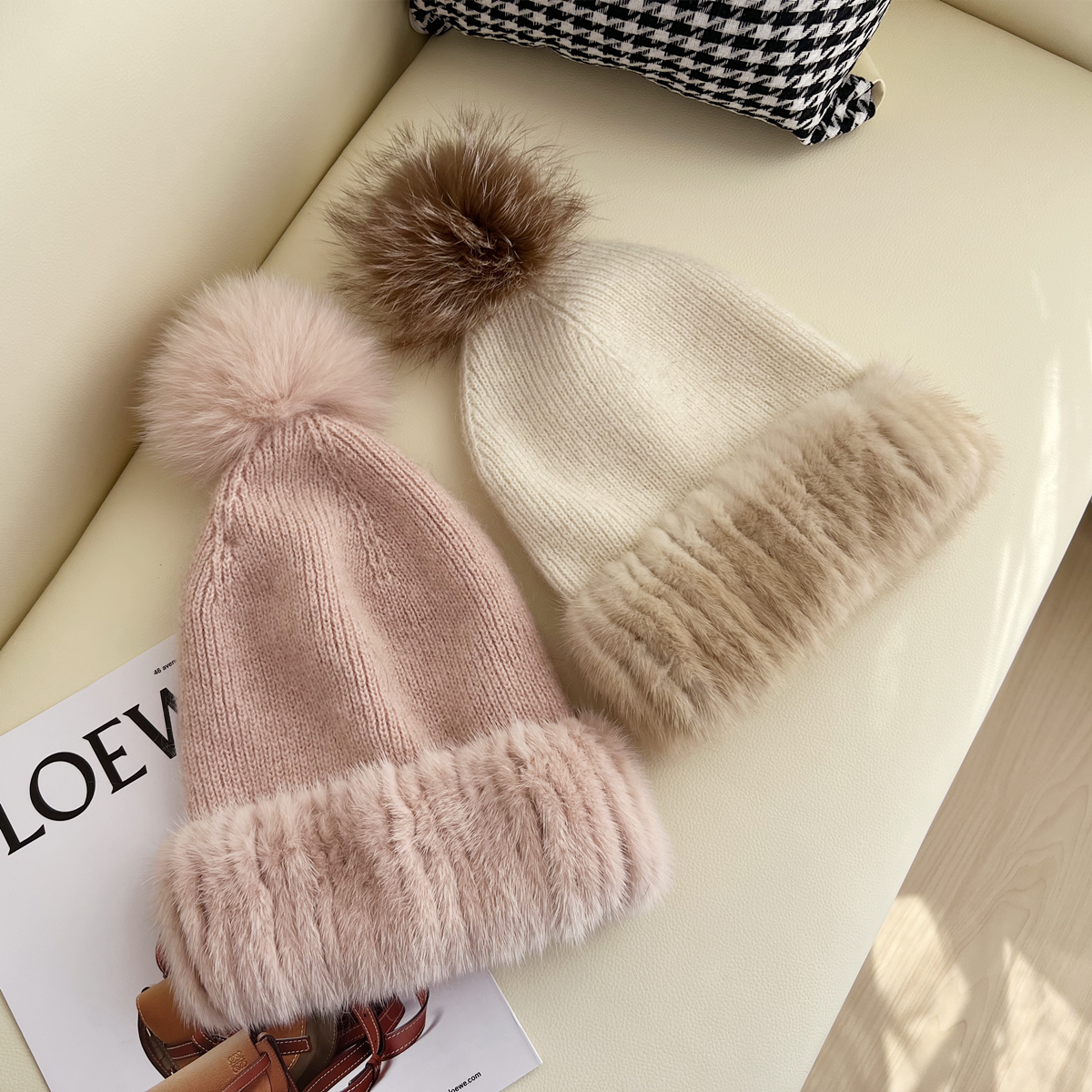 水貂毛配狐狸毛绒绒球帽子