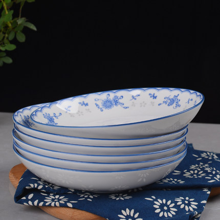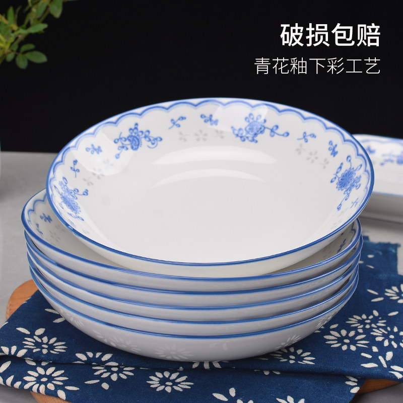 景德镇盘子餐具陶瓷盘家用圆盘子创意碟子中式菜盘子水果盘6个装