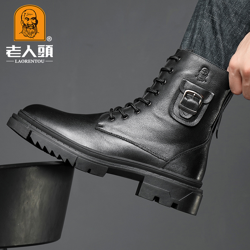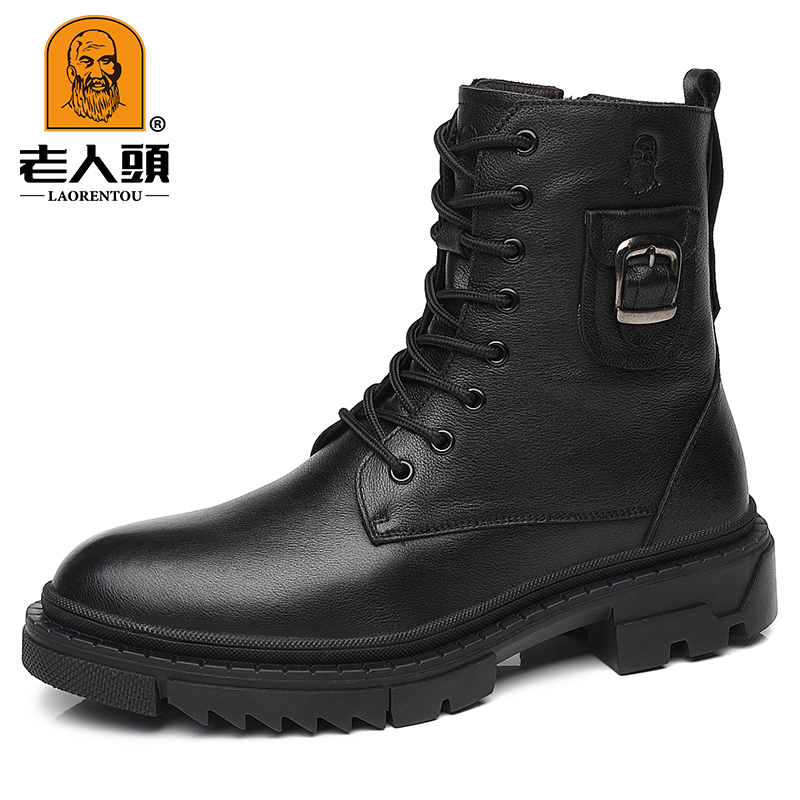 老人头马丁靴男工装靴男士皮鞋冬季雪地棉鞋加绒保暖羊毛高帮鞋子