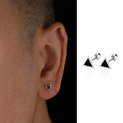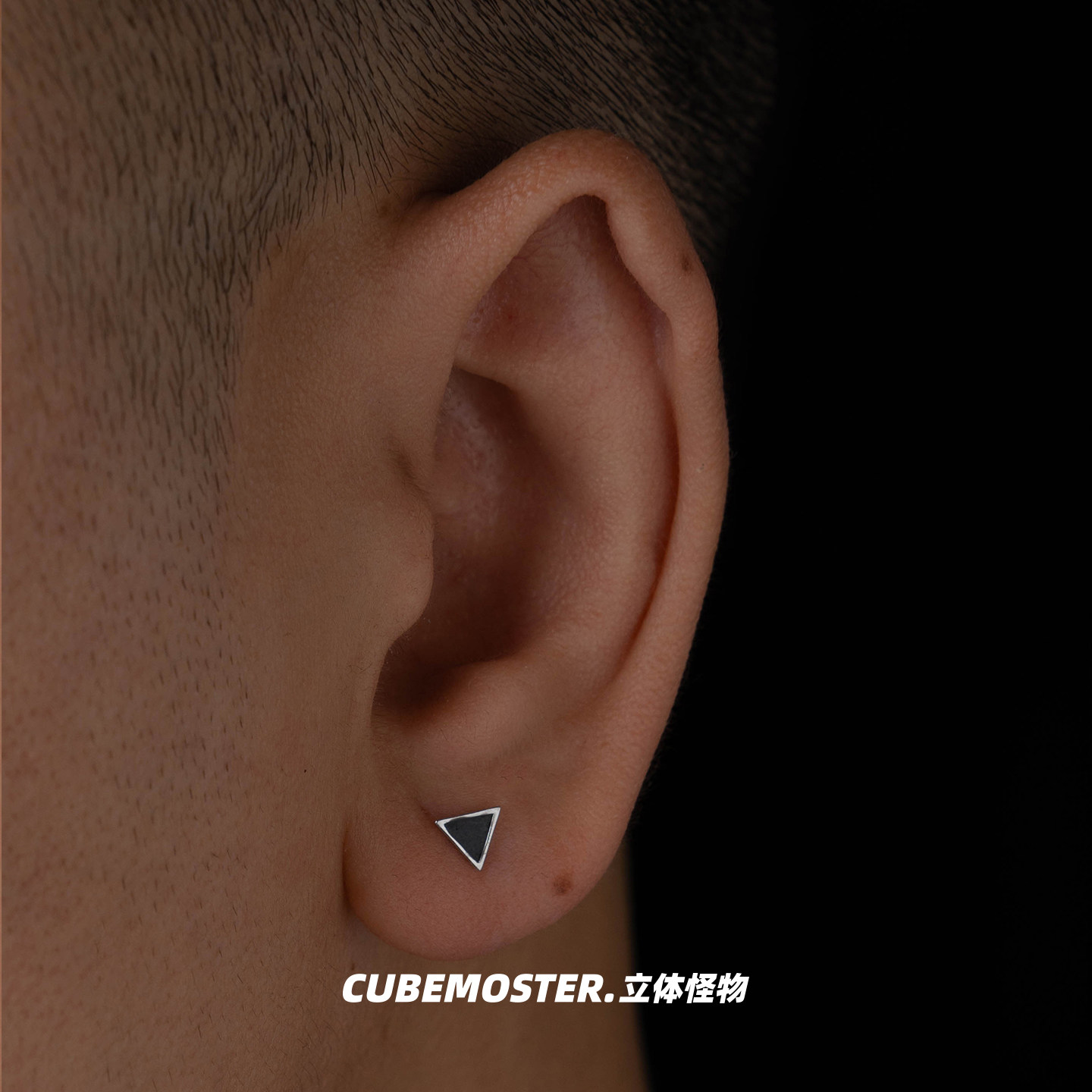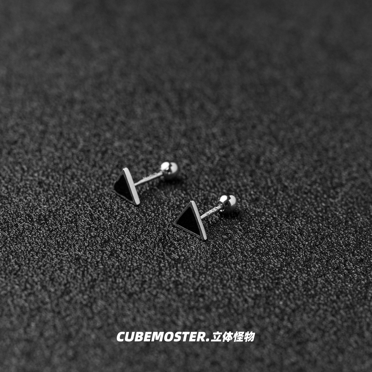 立体怪物 通体S925银三角几何耳钉男女通勤百搭养耳螺旋免摘耳饰