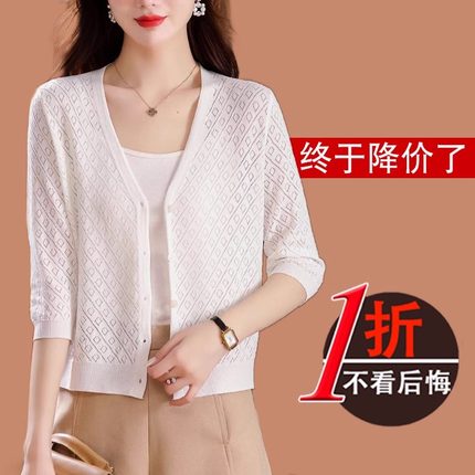 鄂尔多斯市针织开衫女冰丝2025年夏季配裙子上衣真丝小外搭薄披肩