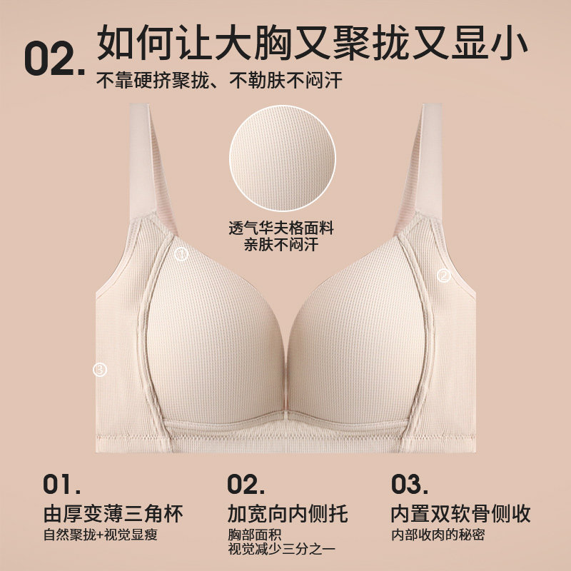 婷美华夫格大胸显小塑形无痕内衣
