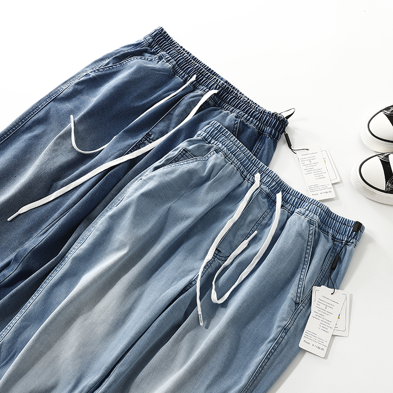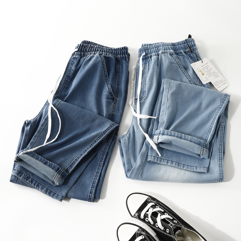 柜1190 冷感天丝!夏季薄款松紧腰牛仔裤男休闲简约宽松透气男裤