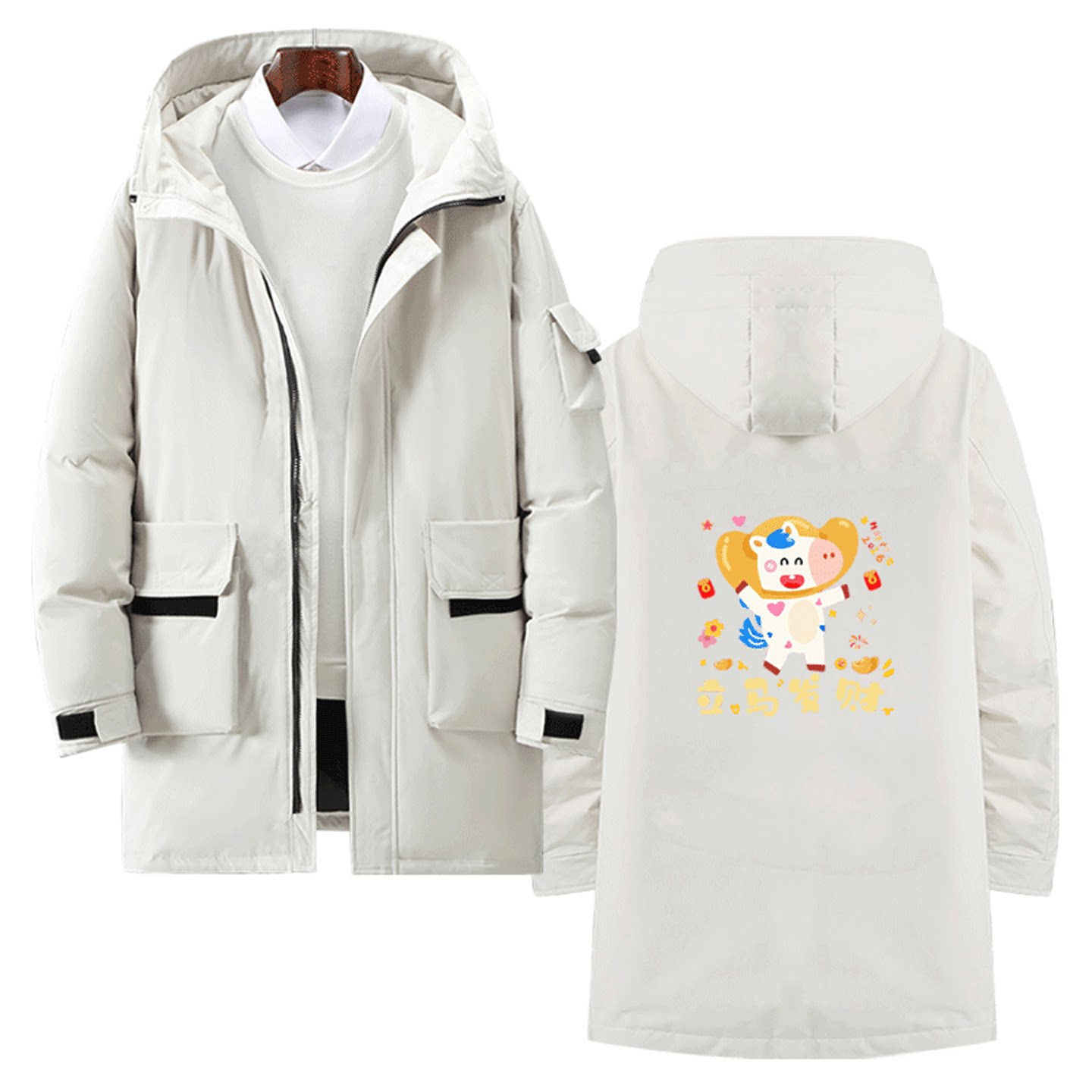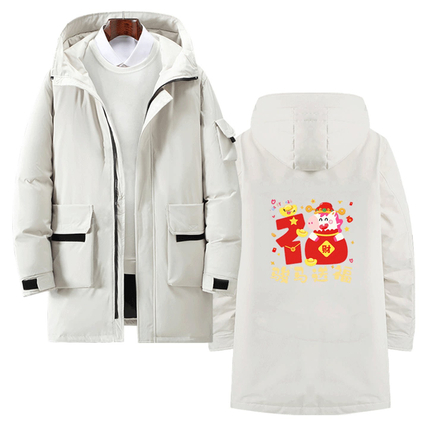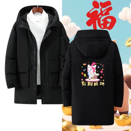 2026生肖马年本命年秋冬季中长款羽绒服喜庆马年可爱印花男女同款