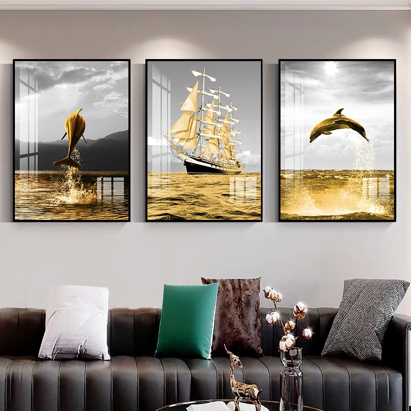 网红新中式背景墙装饰画三联画沙发客厅挂画现代简约轻奢晶瓷防水