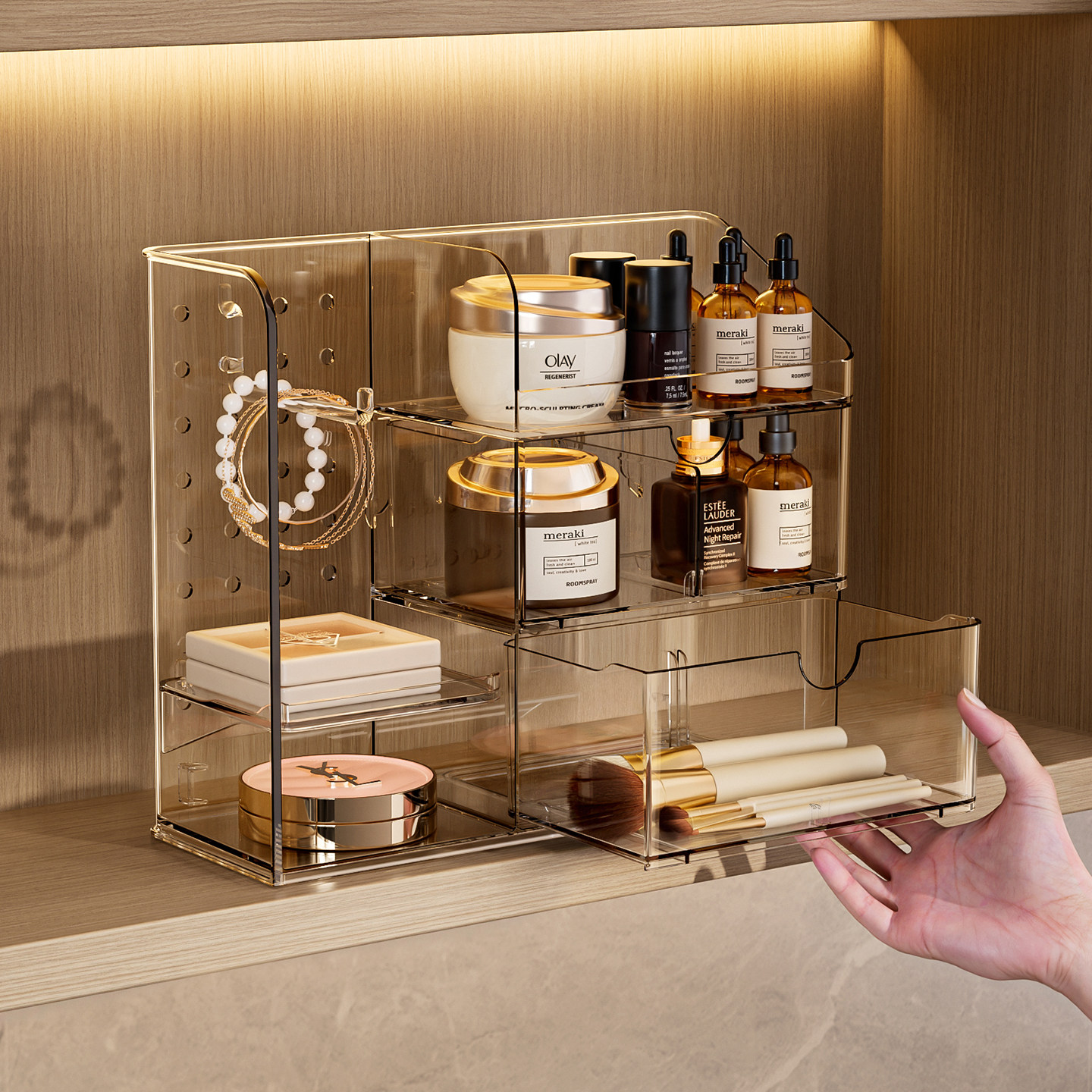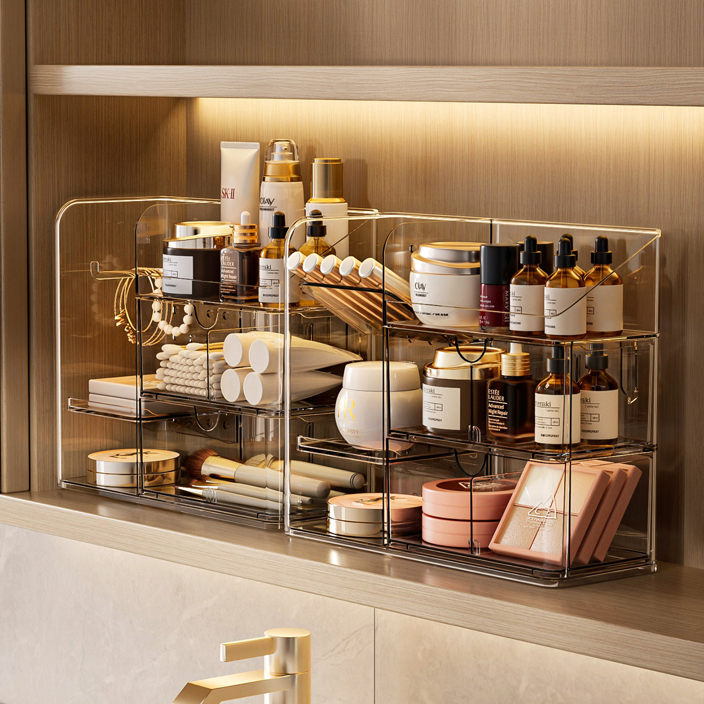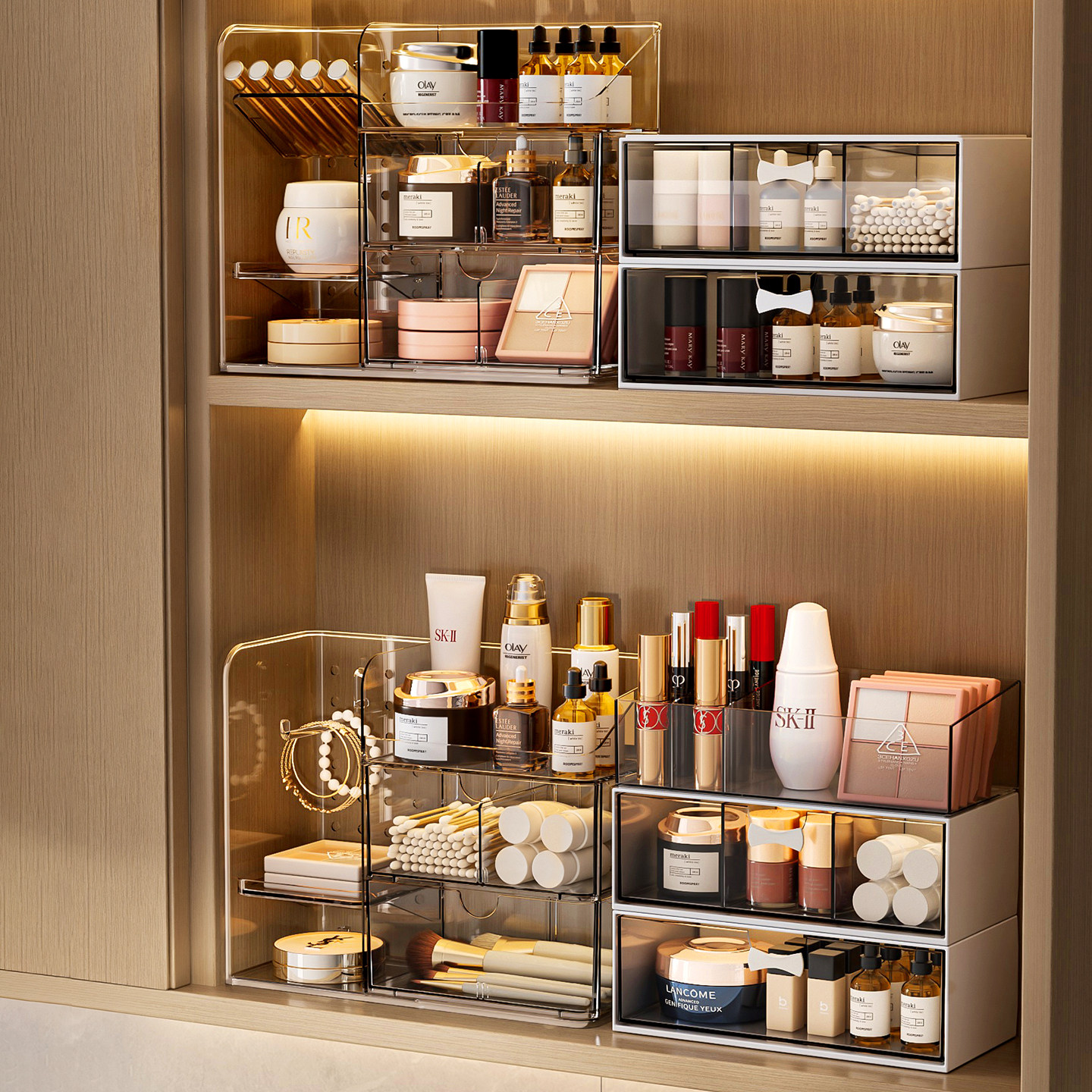 镜柜内收纳盒卫生间化妆品口红置物架桌面分格浴室洗漱台整理盒子