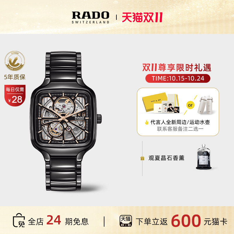 【檀健次同款】Rado瑞士雷达表真我系列黑方机械男士手表陶瓷腕表