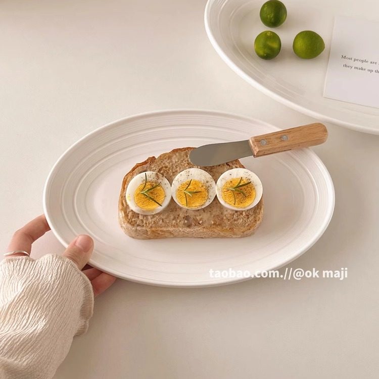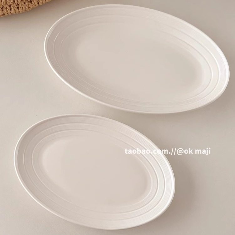 ok maji韩国复古ins风椭圆形陶瓷盘家用蒸鱼盘沙拉盘子餐具水果盘