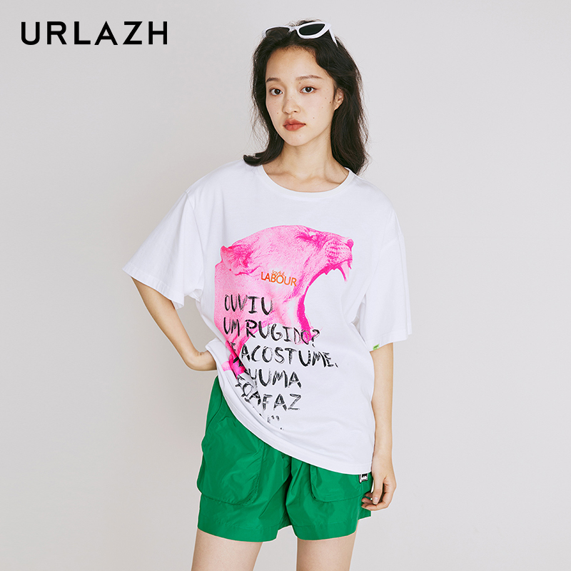 URLAZH有兰夏季新款洋气时尚印花简约白色休闲宽松纯棉短袖T恤女