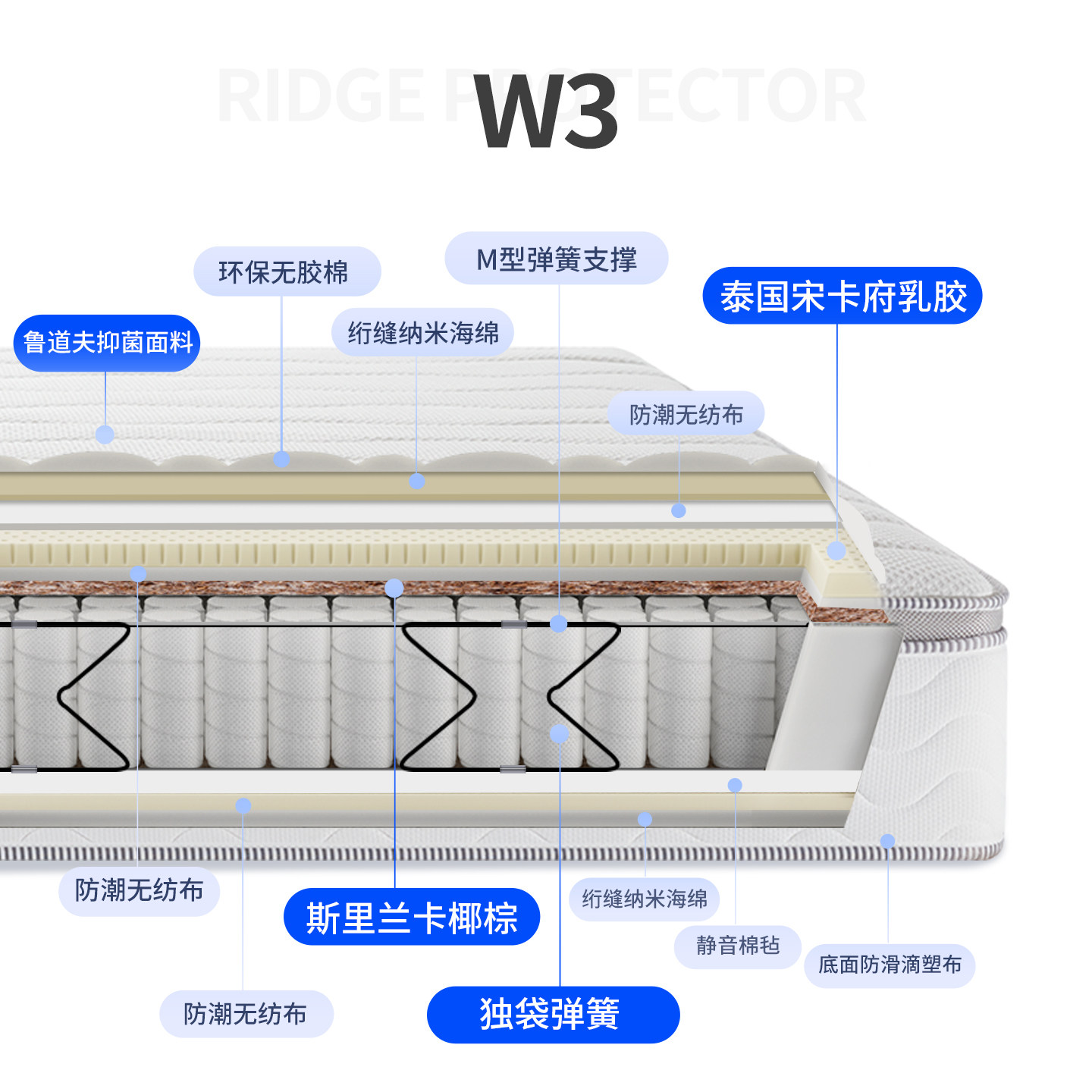 梦神床垫5cm天然加厚乳胶加厚席梦思床垫五星酒店床垫1.8米 W3