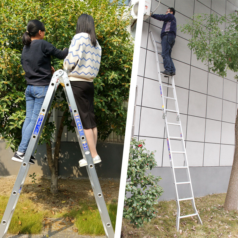 瑞居多功能伸缩双侧梯子直梯折叠攀爬人字梯工程家用收纳铝合金梯
