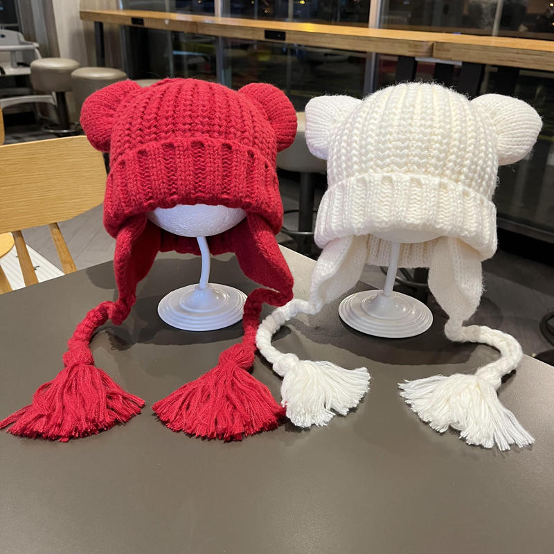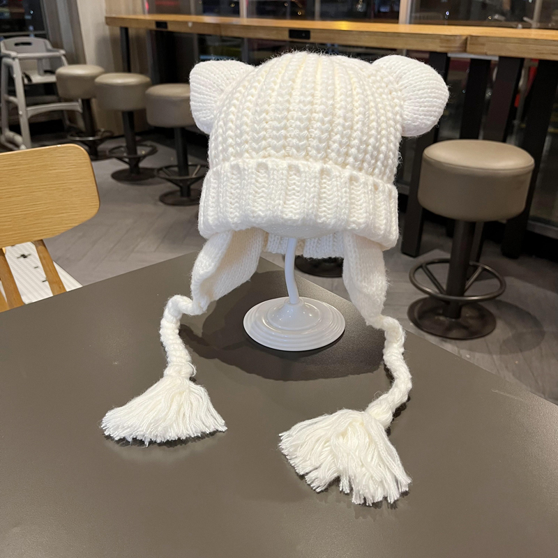 儿童帽子熊护耳帽男宝宝保暖加厚针织帽女童时尚套头毛线帽秋冬款