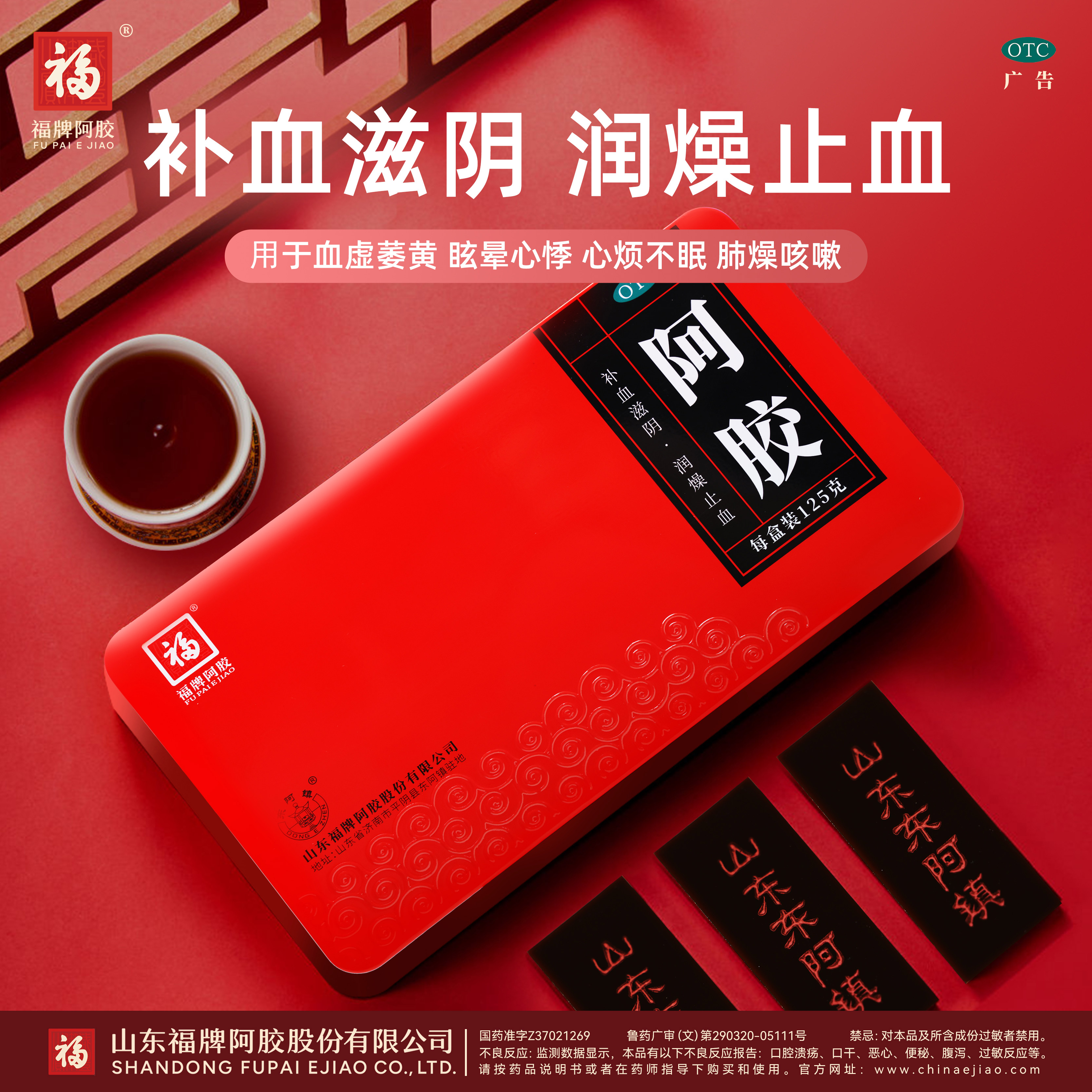 福牌阿胶块125g补益气血养血润燥双补女驴胶官方旗舰店正品礼盒