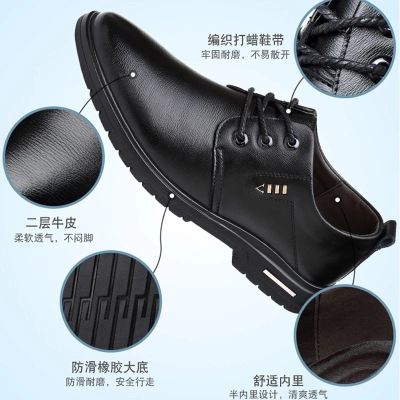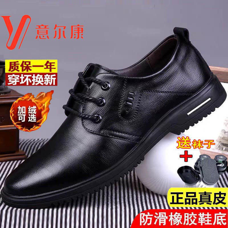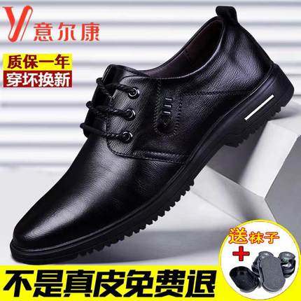 意尔康皮鞋真皮秋冬新款男士商务正装休闲黑色透气软皮软底爸爸鞋