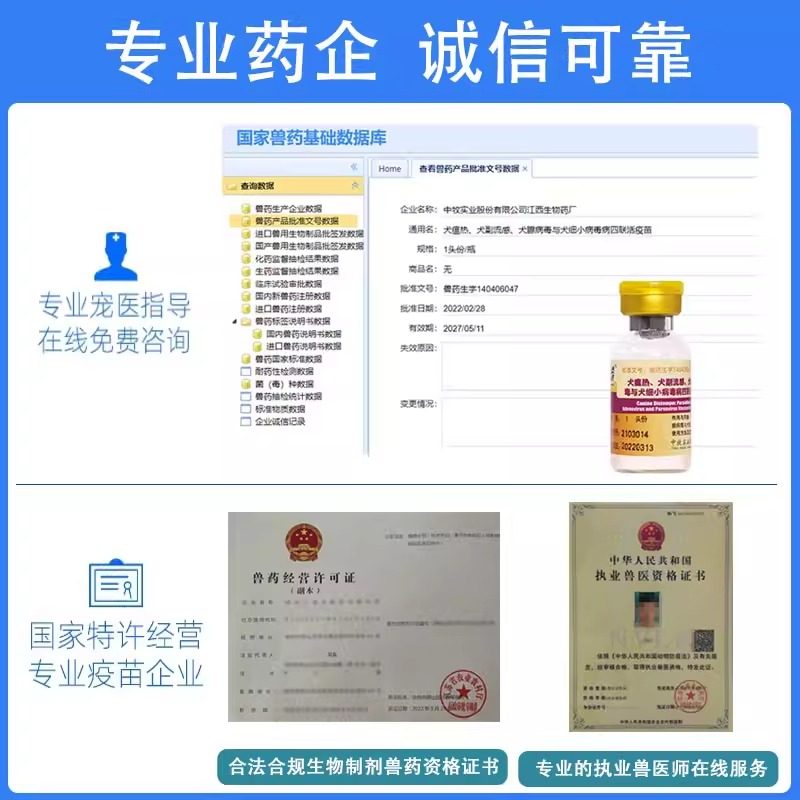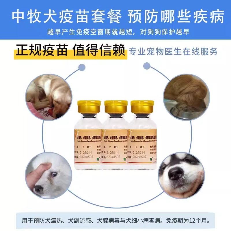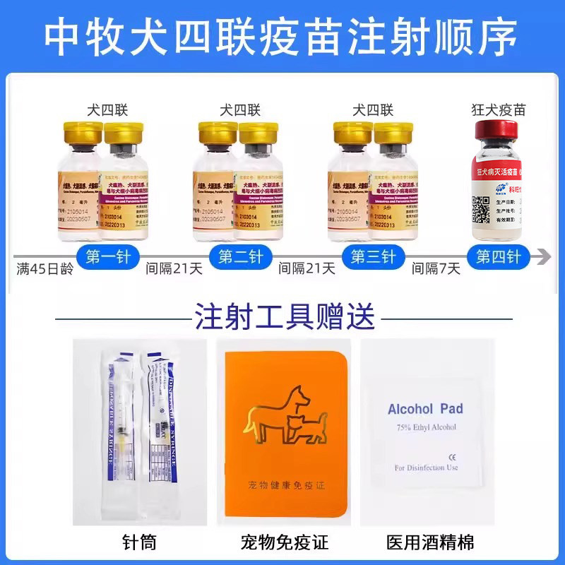 中牧幼犬四联狂犬疫苗全套犬狗狗四联预防针狗疫苗内外驱虫套餐针