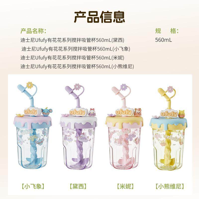 MINISO名创优品迪士尼Ufufy有花花搅拌吸管杯560ml维尼熊小飞象