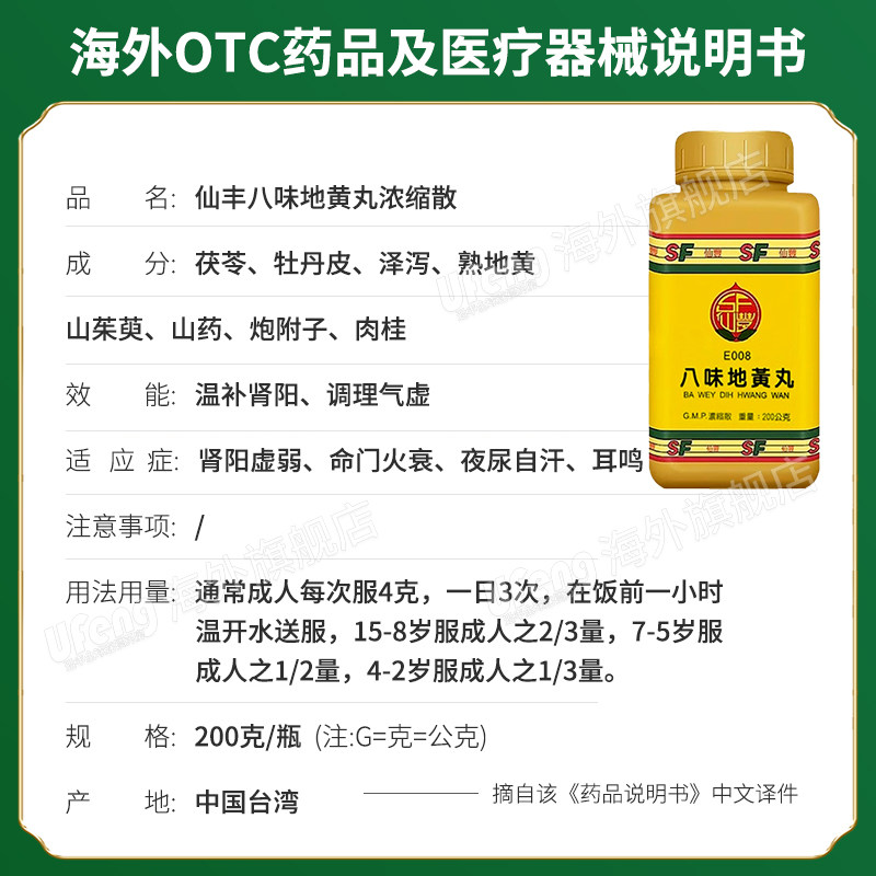 台湾仙丰中药八味地黄丸倪海厦温补肾阳调理气虚肾阳虚弱夜尿自汗