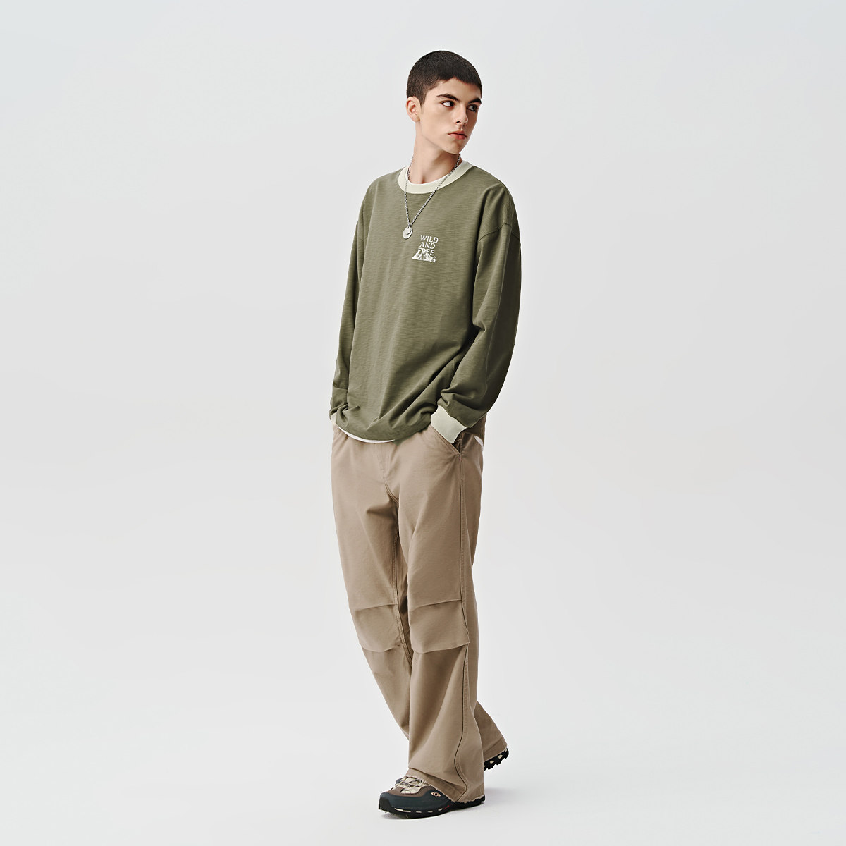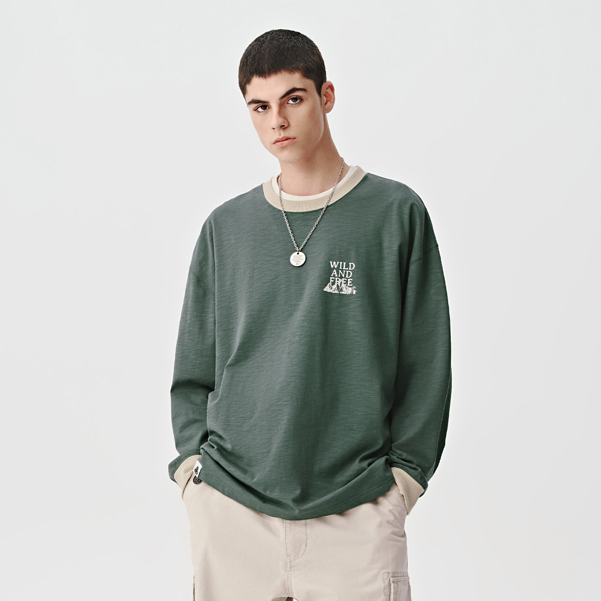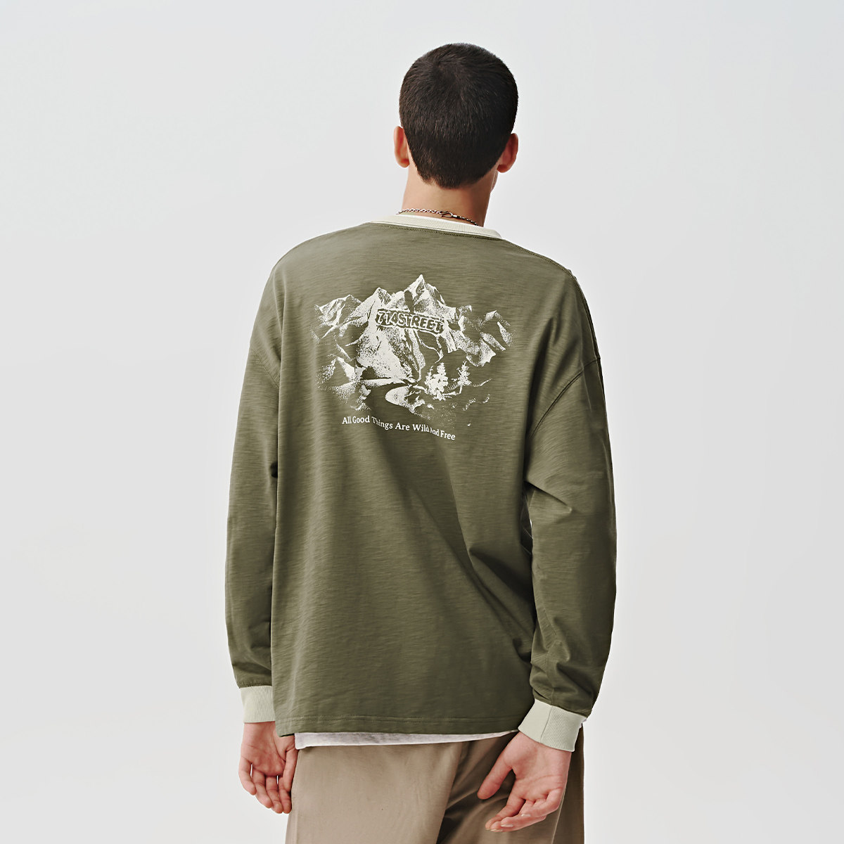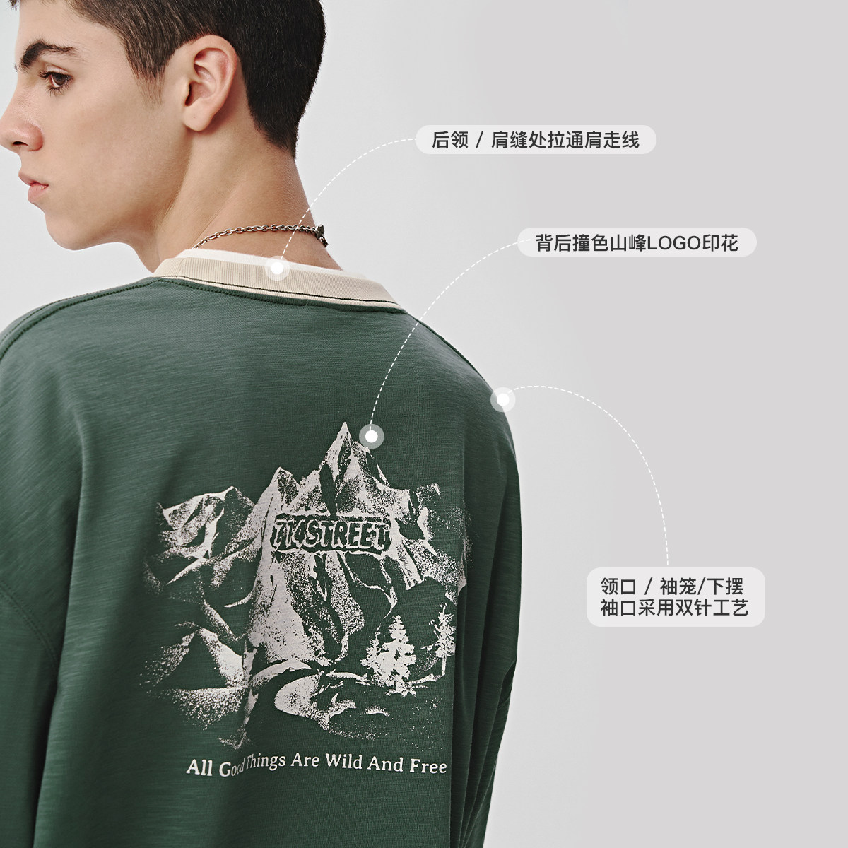 714street美式复古2024秋季新款印花竹节长袖T恤男情侣装宽松上衣