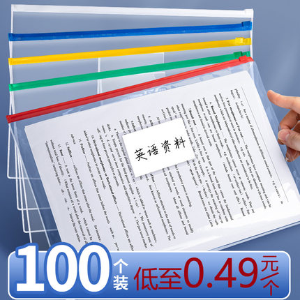 a4纸文件袋透明款塑料防水加厚资料拉边袋档案拉链式证件考试试卷分类收纳学习文具办公用品小学生初中生专用