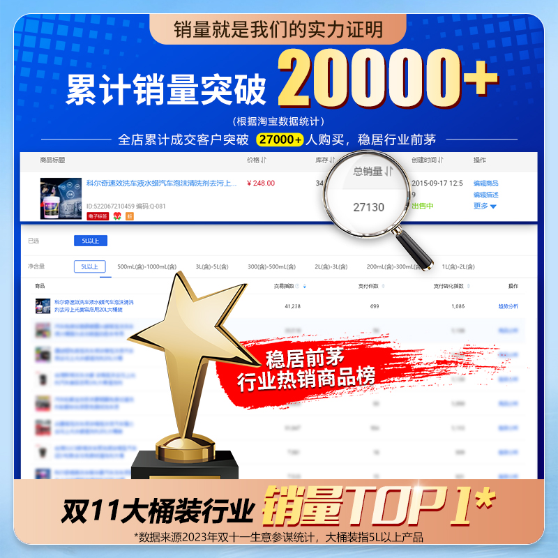 科尔奇速效洗车液水蜡汽车高泡沫清洗剂中性去污美容店专商用大桶