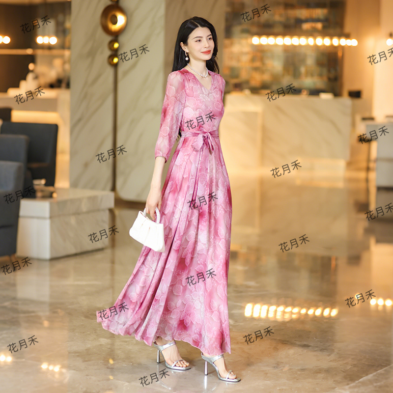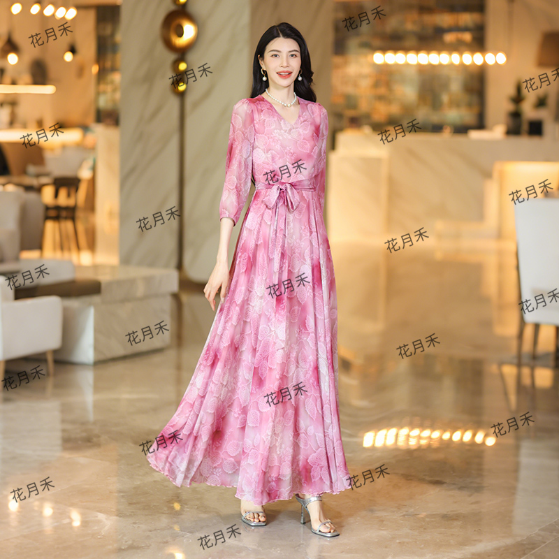 2025年春秋冬气质优雅连衣裙收腰显瘦长裙妈妈款短款小个子沙滩裙