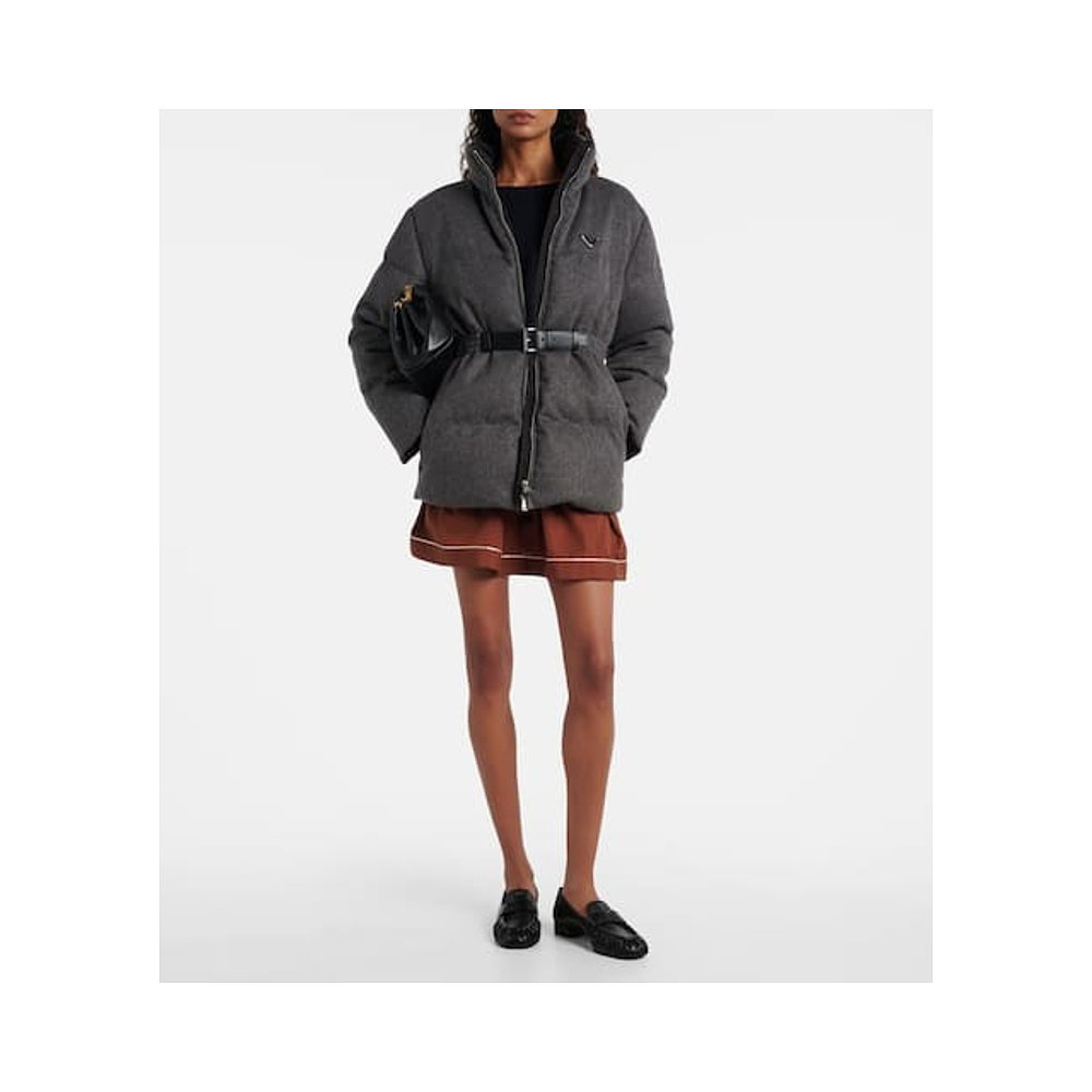 1h可退 香港直邮Prada 普拉达 女士 束带初剪羊毛羽绒夹克