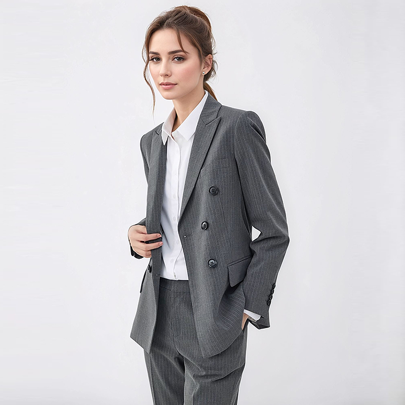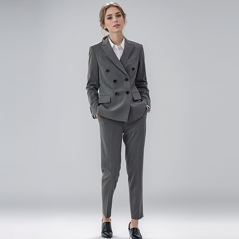 时尚条纹西装套装女双排扣职业OL商务通勤2025新款西服外套正装