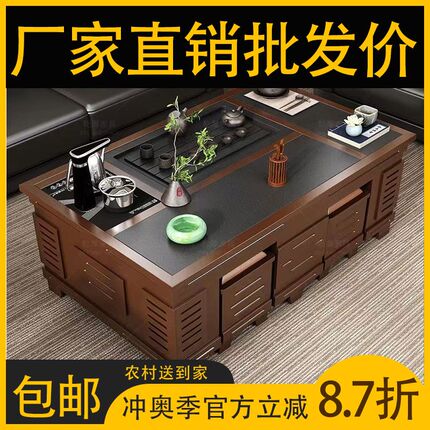 功夫茶几茶桌带烧壶客厅家用办公室现代简约火烧石多功能整装实木