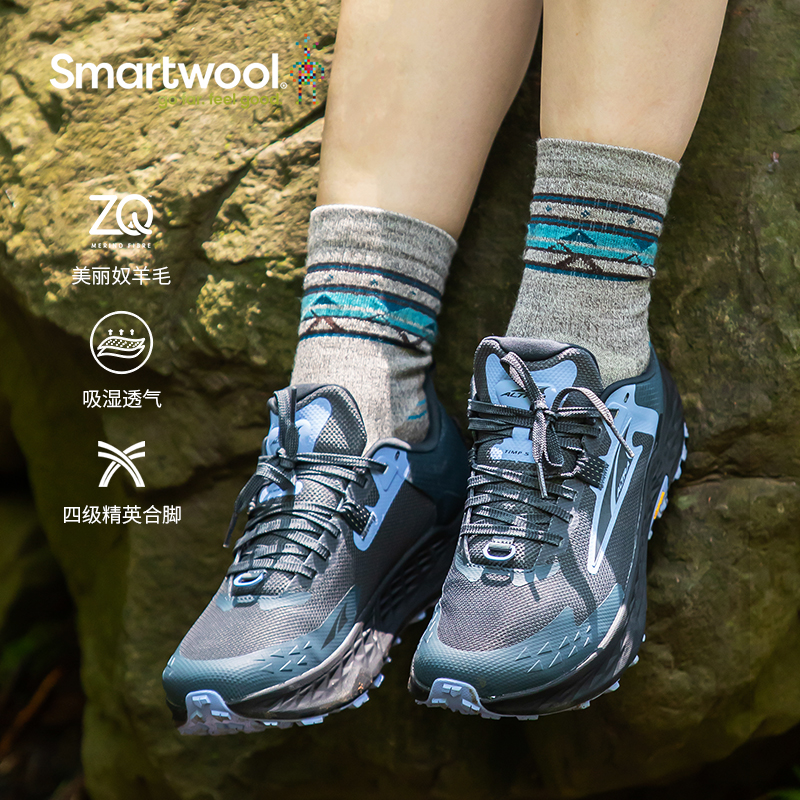 Smartwool女士徒步轻量减震短筒袜民族风羊毛袜户外袜运动袜1580