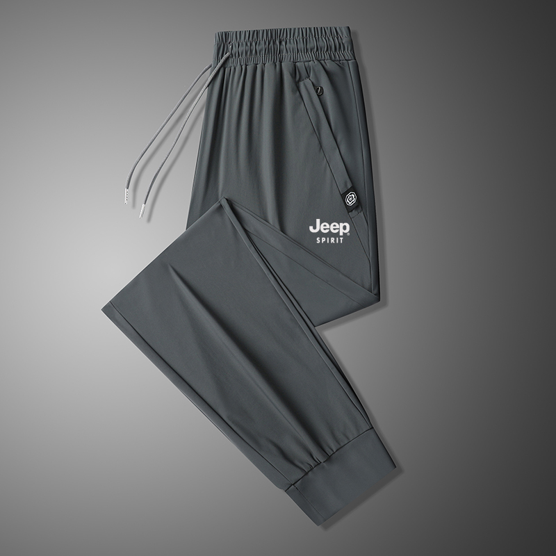 吉普夏季男士冰丝裤速干透气运动休闲长裤子空调裤跑步新款弹力裤