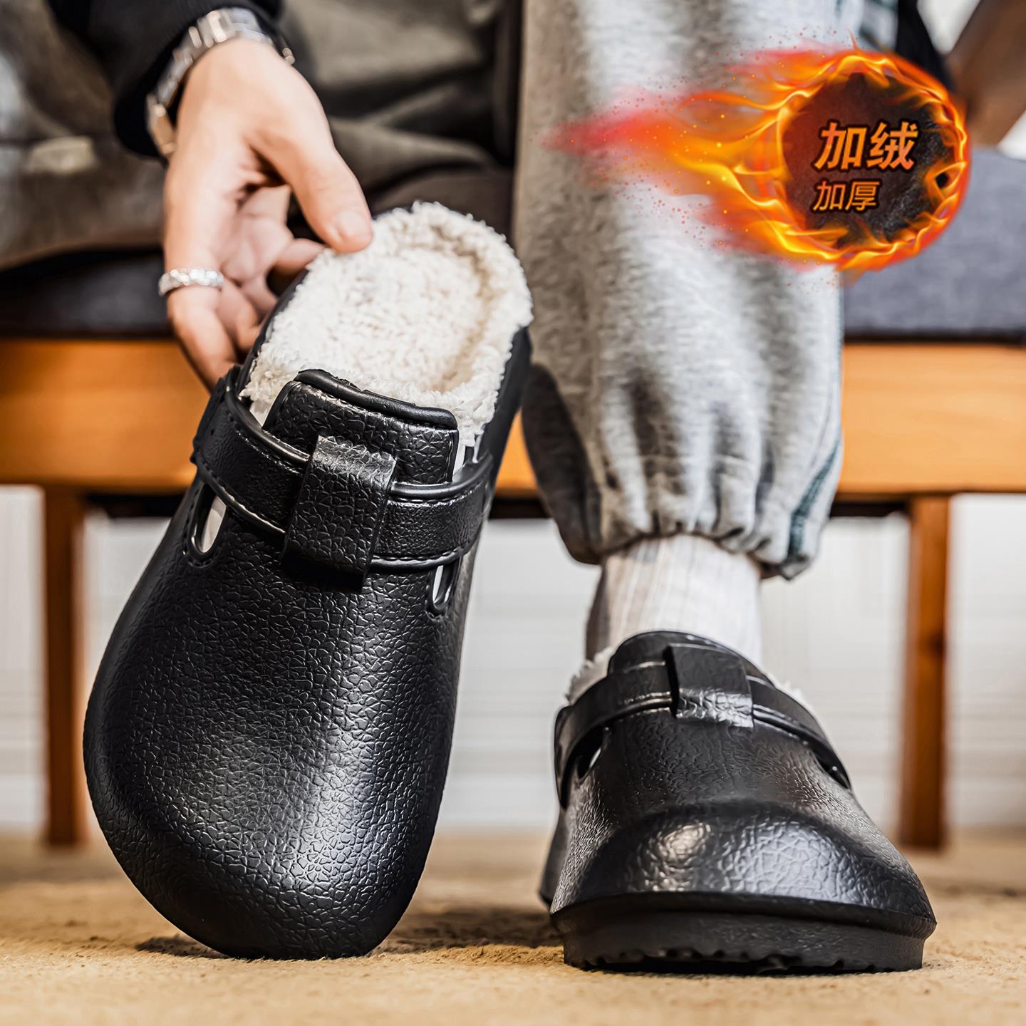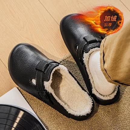 勃肯拖鞋男款冬季加绒保暖加厚棉拖外穿防滑一脚蹬开车办公室棉鞋