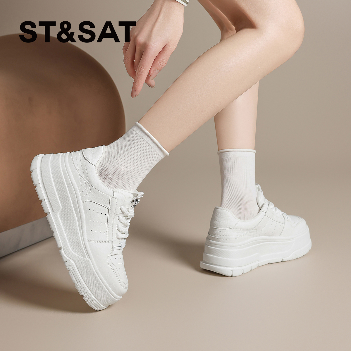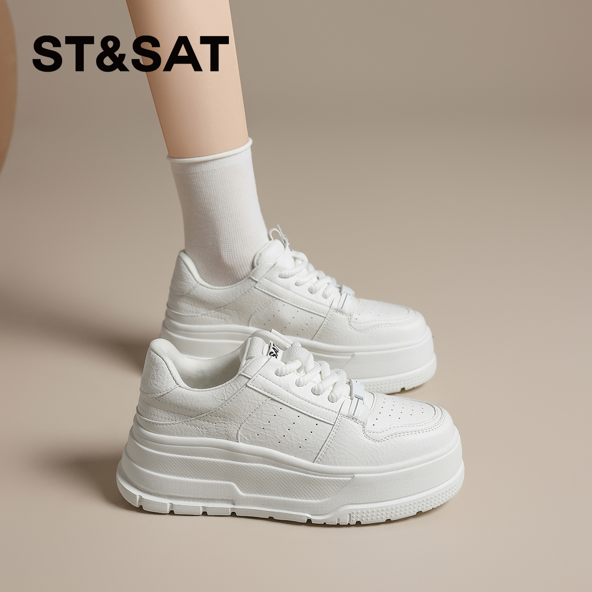 星期六超火厚底小白鞋女2025秋季新款松糕系带百搭运动休闲鞋板鞋