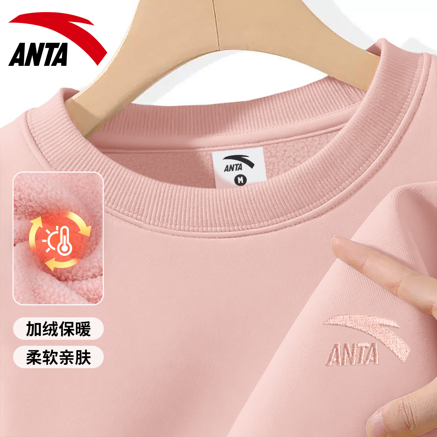 安踏卫衣男款宽松长袖加绒加厚