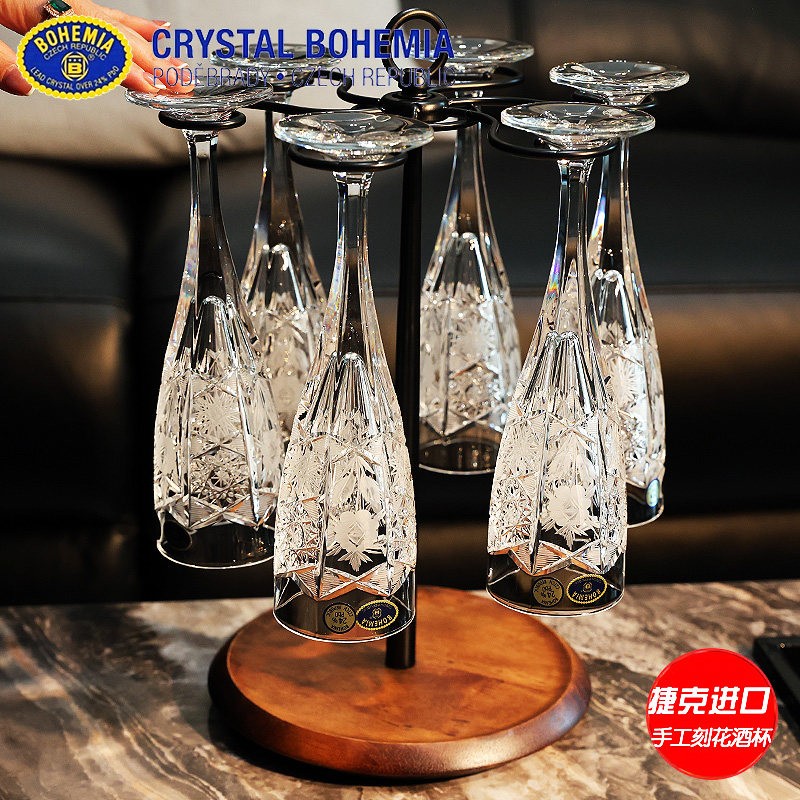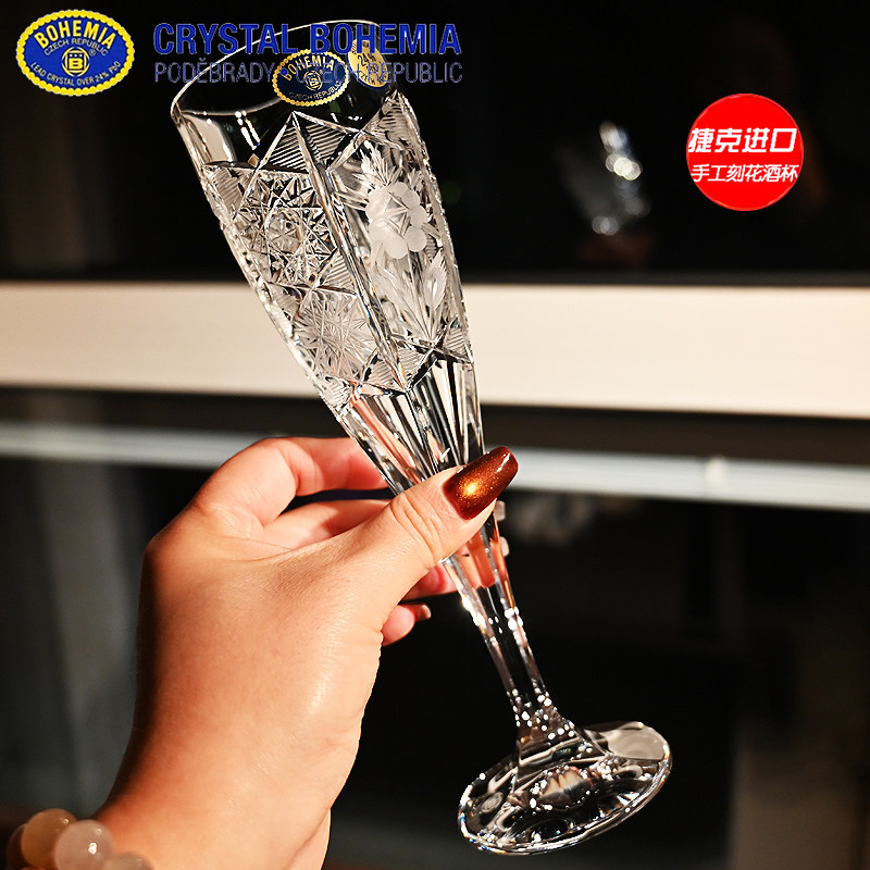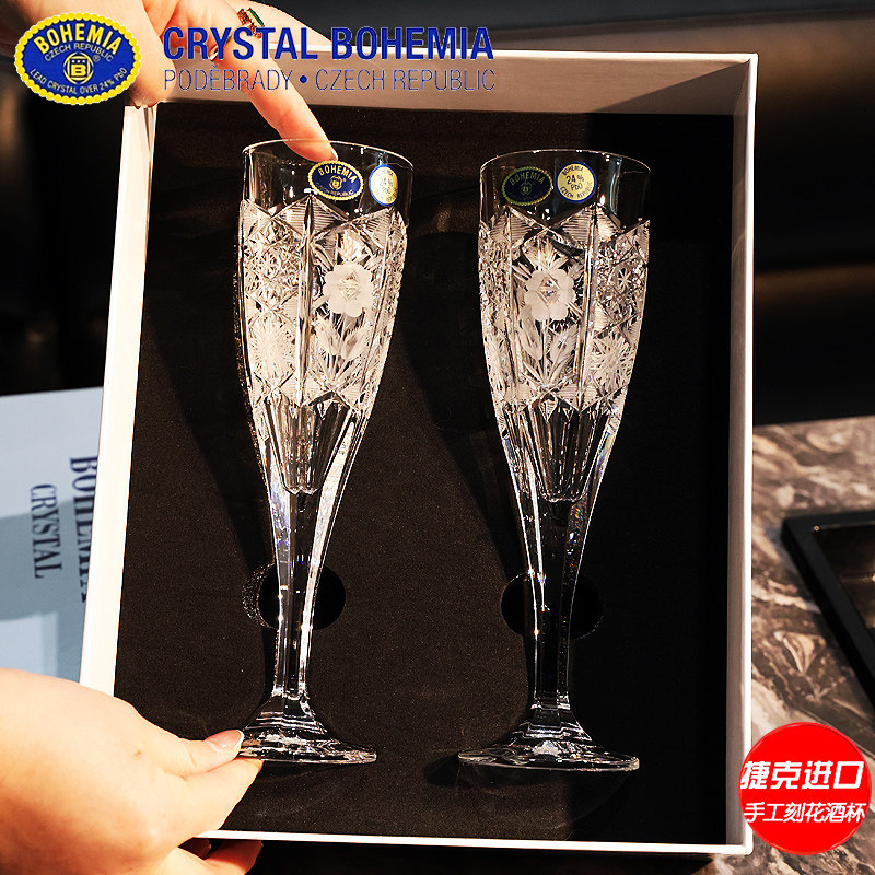 新品捷克BOHEMIA进口水晶玻璃手工车刻高脚香槟杯气泡对杯子礼盒