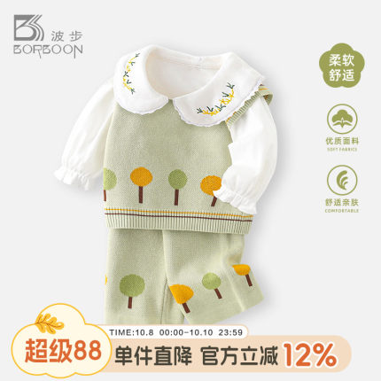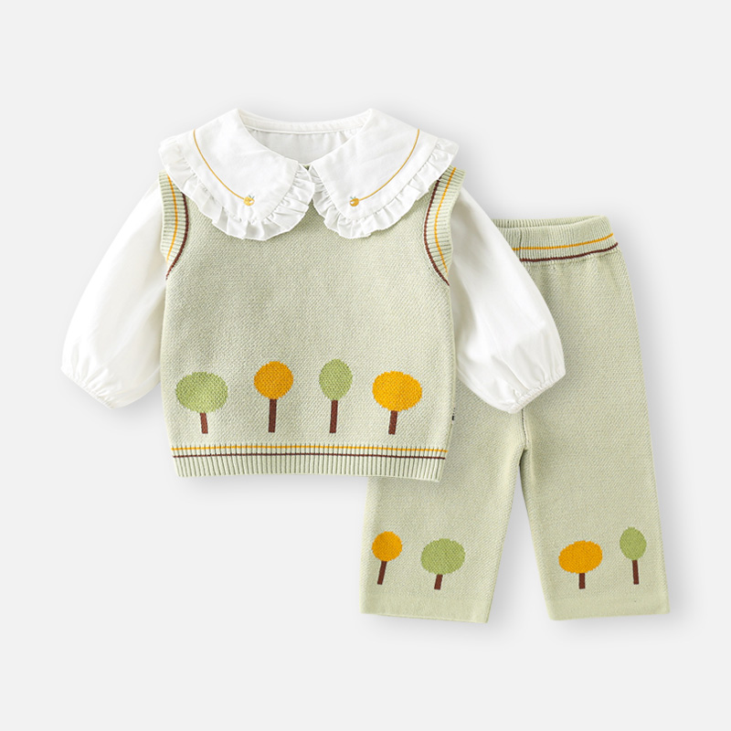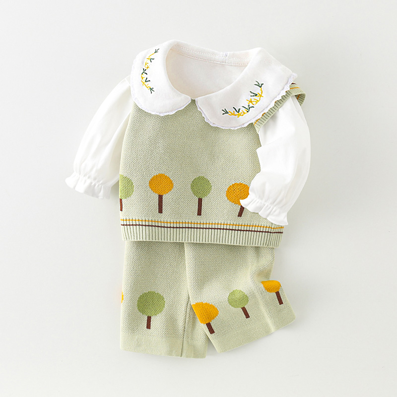 女宝宝毛衣套装2025秋装儿童洋气衣服婴幼儿针织衫时髦外出三件套