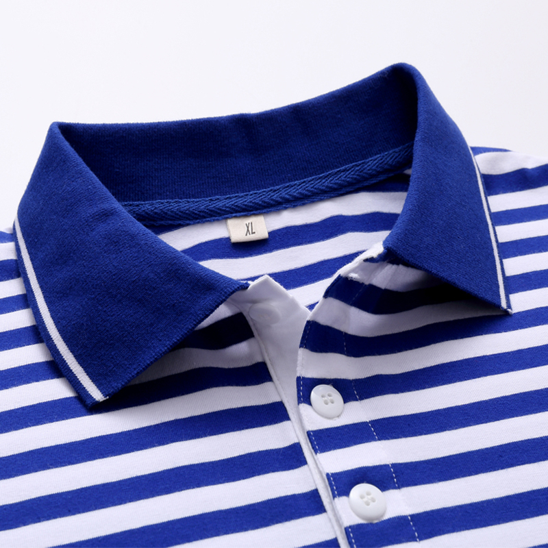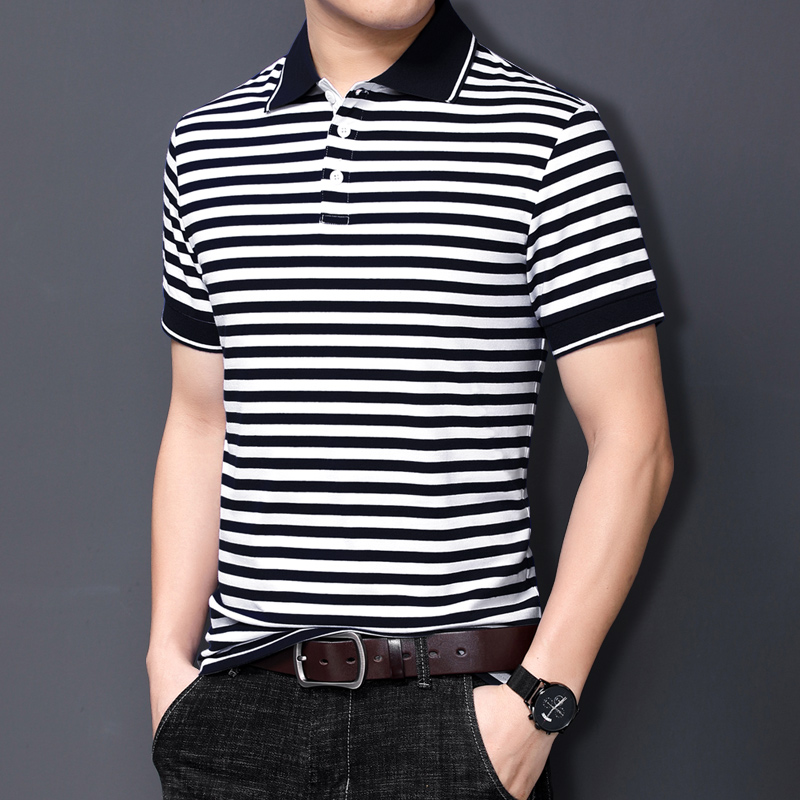 男翻领短袖海魂衫t恤夏季纯棉T蓝色条纹有带领商务休闲保罗POLO衫