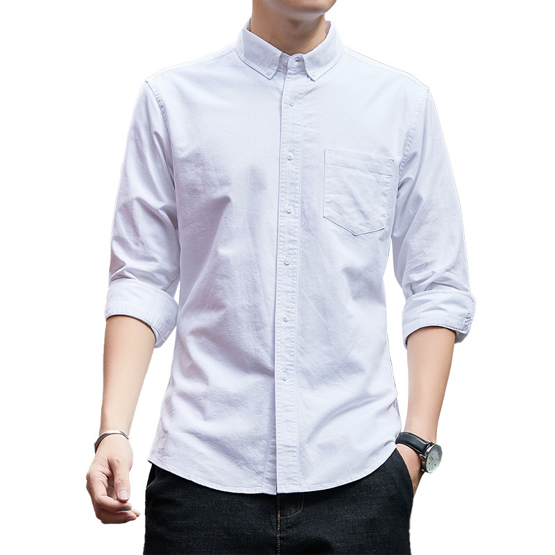 纯棉男士衬衫长袖2025新款秋季牛津布纯色男款商务休闲全棉衬衣