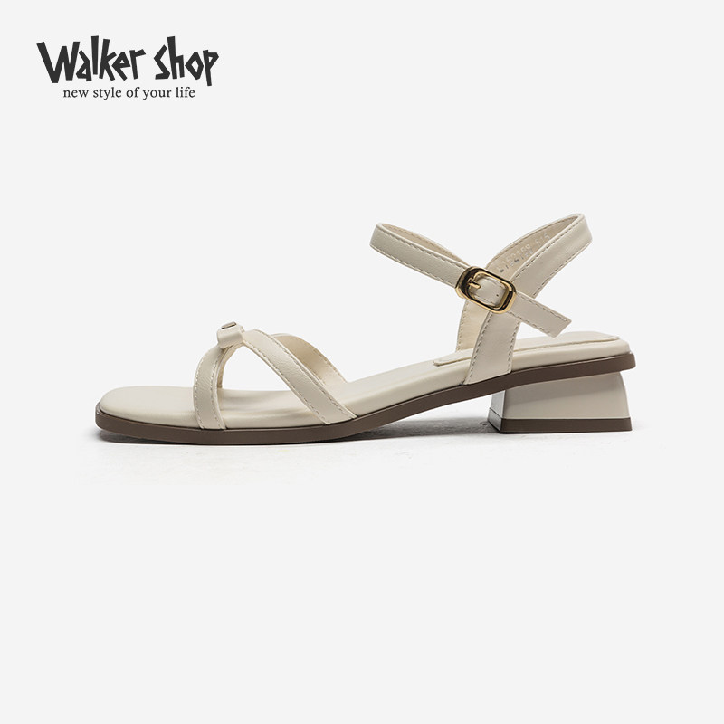 Walker Shop凉鞋女2025夏季新款法式蝴蝶结粗跟方头露趾一字带鞋