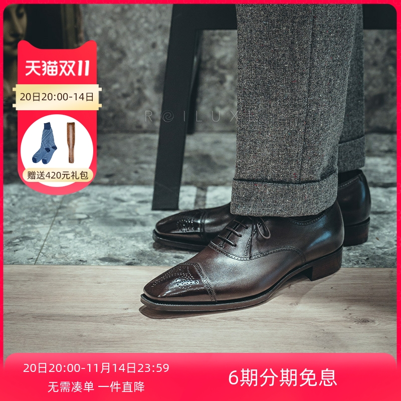 英国Gaziano&Girling固特异皮鞋 手工Oxford牛津布洛克鞋Highland