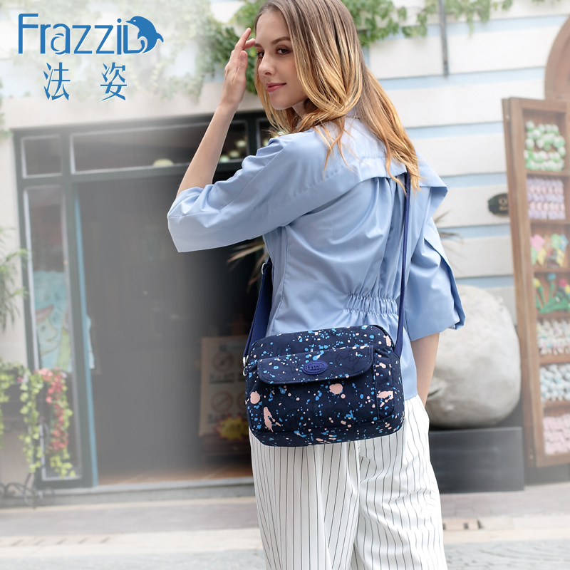 法姿女包斜挎包春夏新款休闲尼龙布包印花简约妈妈单肩包轻便防水